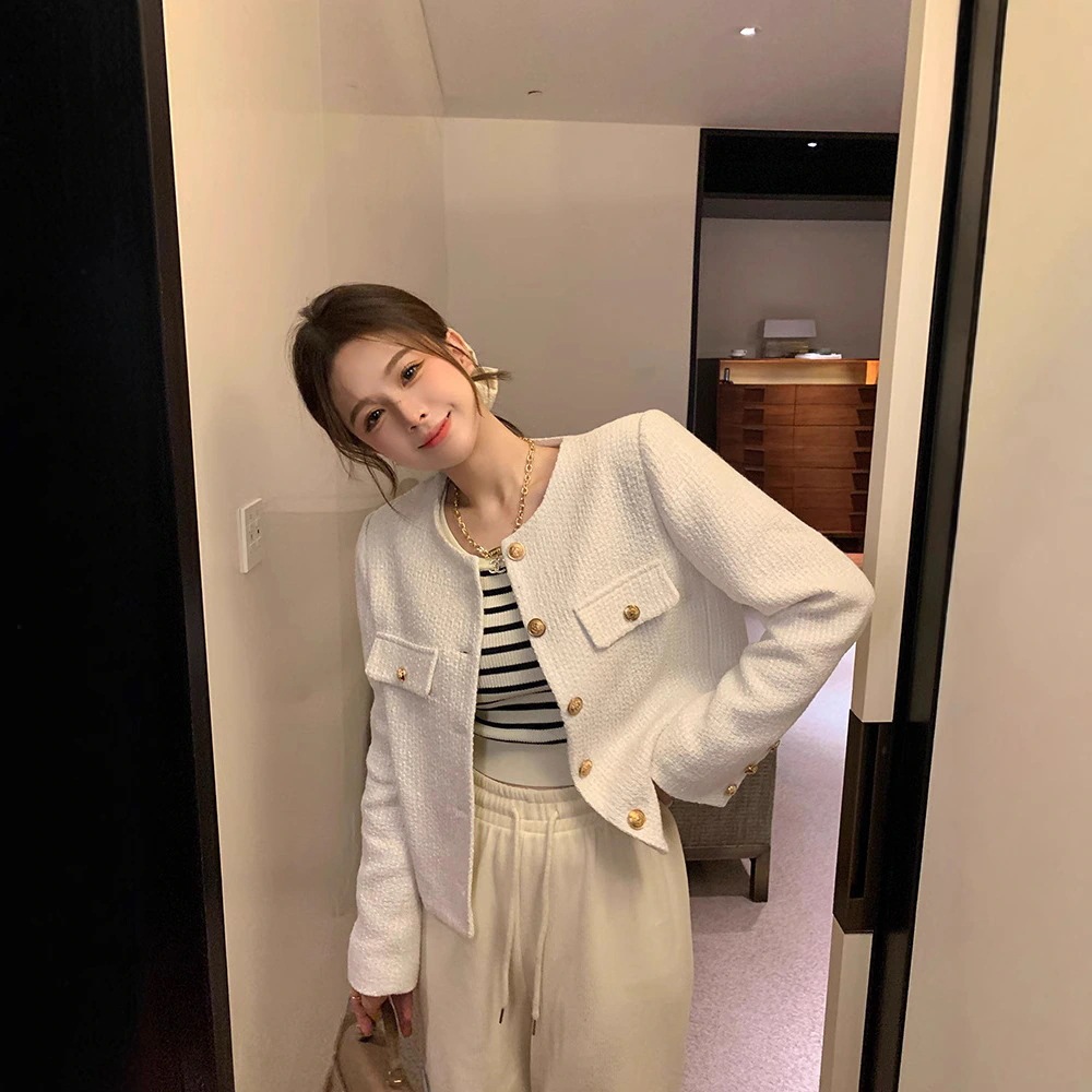 春秋の小香風の柔らかいモチモチとしたニットセーターのカーディガンのコートの女性はゆったりとした怠惰な高級感がある パーカー