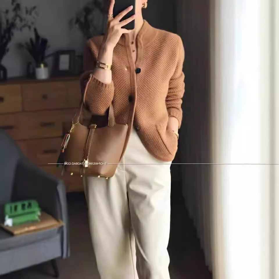 オートクチュール スタンドカラー ジャンパー カーディガン ジャケット レディース 新作 ゆったり 気質 カジュアル ニット カーディガン
