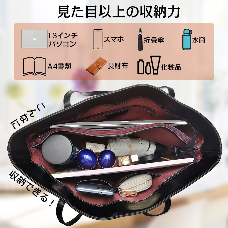 本革 トートバッグ レディース レザートートバッグ a4サイズ 通勤 普段用 ビジネスバッグ ハンドバッグ 仕切り ファスナー付き 肩掛け 軽量 大容量 防水 仕事用 2way 大きめ