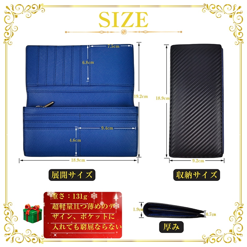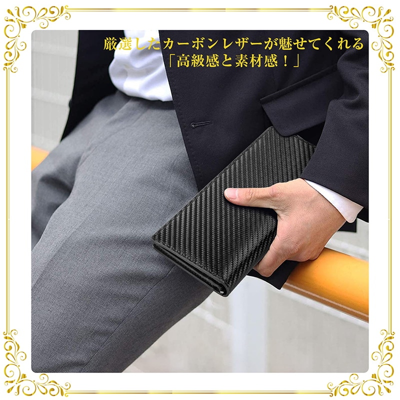 カーボンレザー 財布 メンズ 長財布 牛革 2折り 大容量 財布 多くのカード収納でき 小銭入れ 父の日 お祝い プレゼント 通勤 通学 携帯便利 長財布