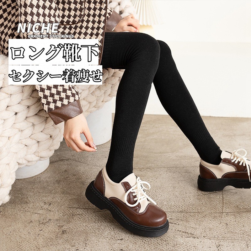 靴下 2足セット韓国ファッション膝上丈ソックスロング靴下 脱げない 保温 厚手ロング靴下 防寒 暖かい着圧 無地 秋冬用 ニット靴下クリスマス