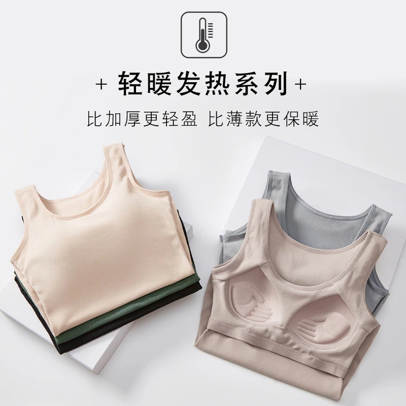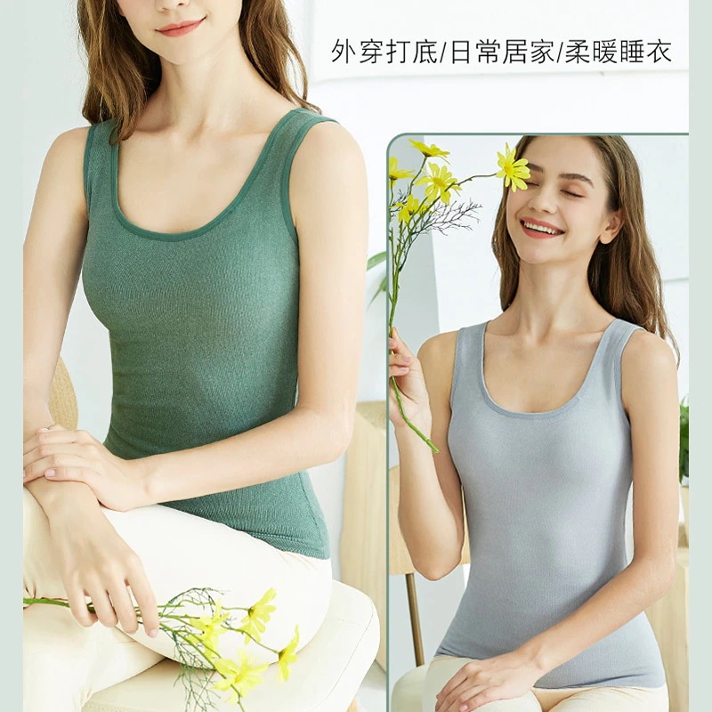 2024 人気 カップ付きインナー 保温チョッキ一体型まとめ下着厚手防寒上着秋冬 キャミソール タンクトップ ヨガ 美背 レディース キャミソール