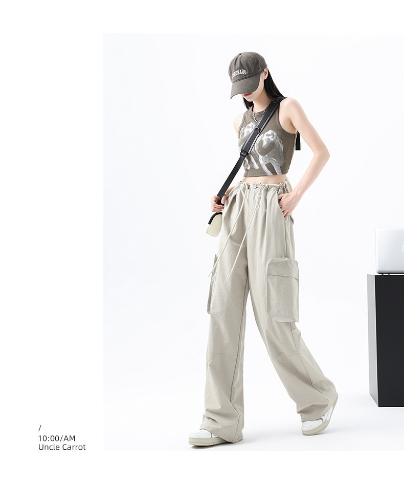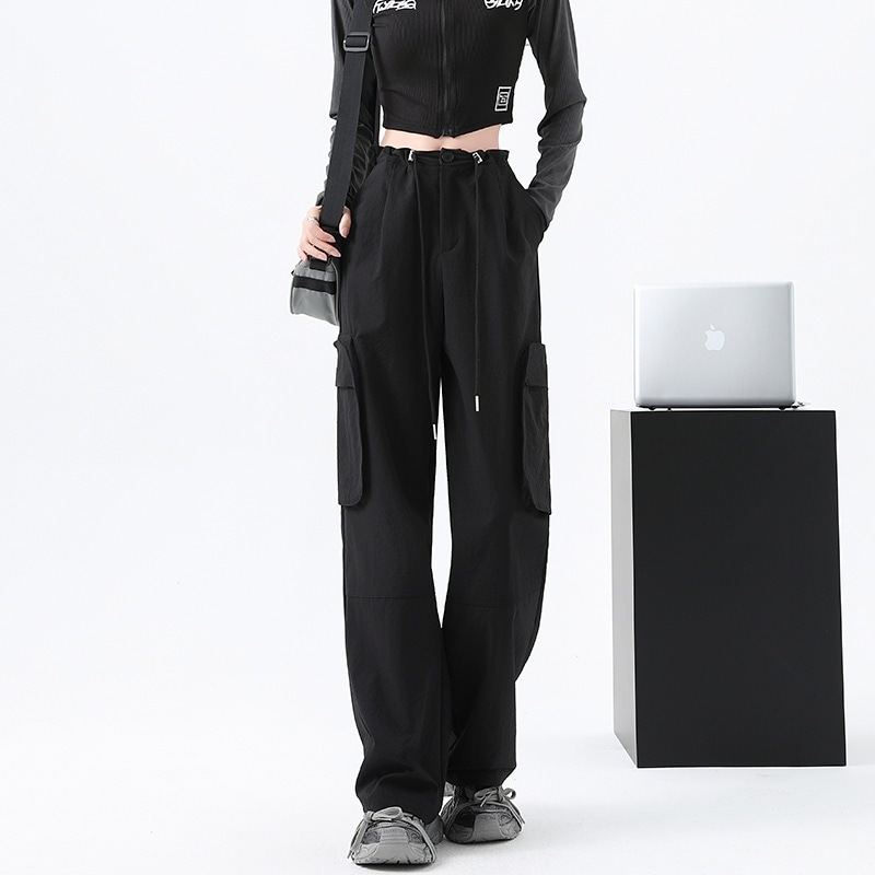韩国風 カーゴパンツ ロングズボン ゆったり デニムパンツ ズライクカーゴパンツ ワイドパンツ カーゴパンツ