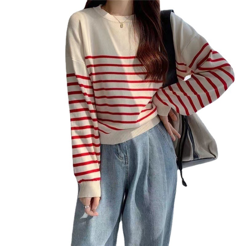 [本日限定] 長袖 ニット 春 秋 ボーダー かわいい トレーナー セーター 部屋着 レディース Tシャツ カットソー
