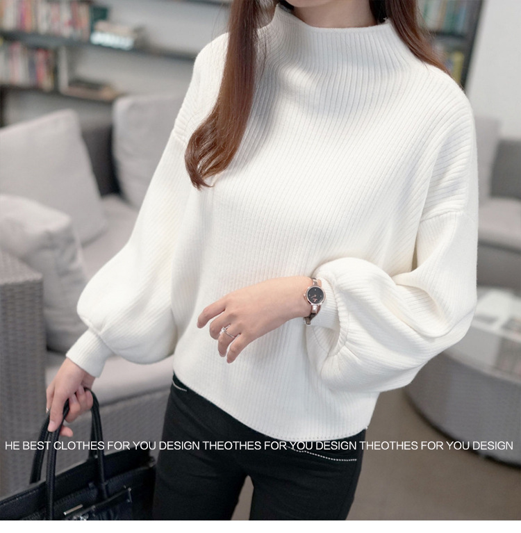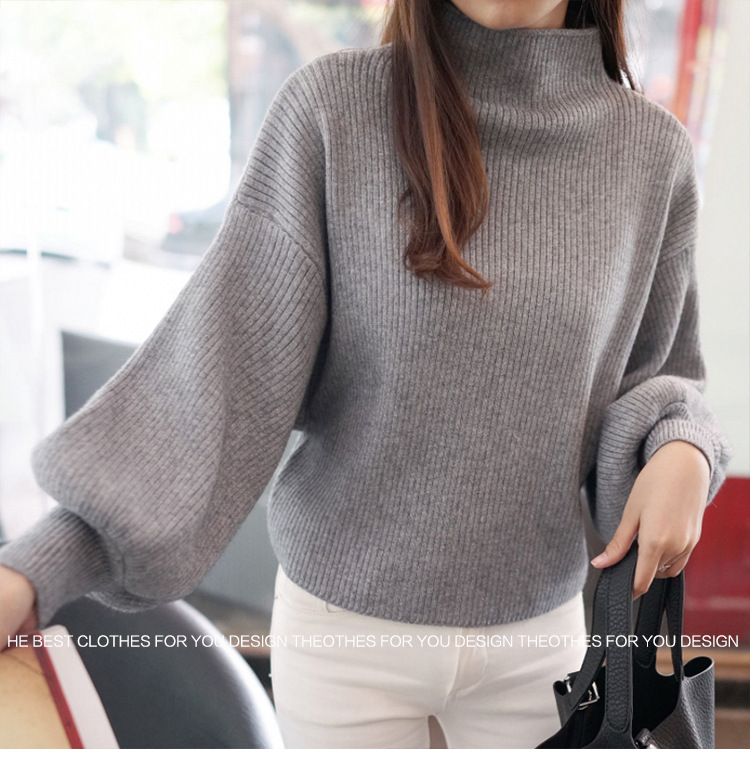 [本日限定] ボリューム袖 ニット ハイネック トップス バルーン袖 長袖 冬 ニット