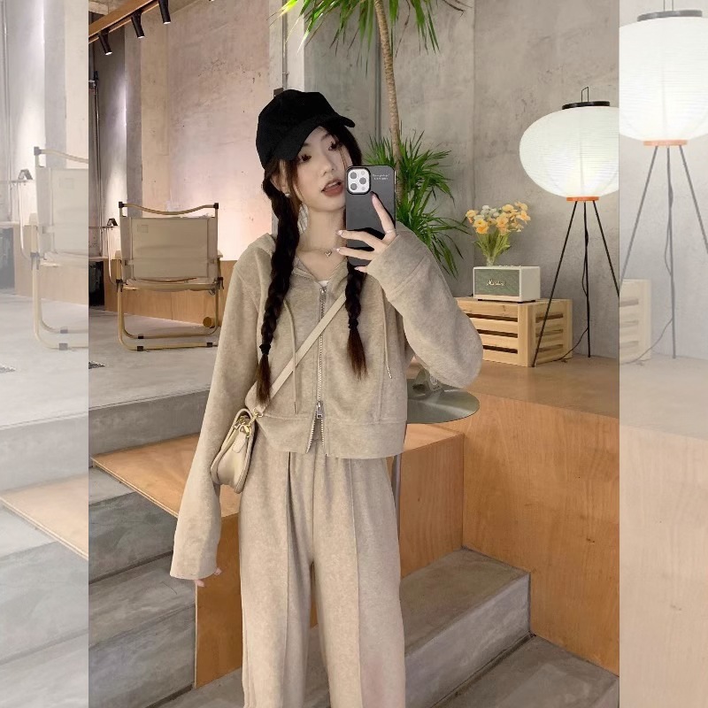 春 秋 セットアップ トップス+ズボン 大きいサイズパーカー スウェット ア ップ 長袖フード付きアウター無地 スウェットパンツ レディース