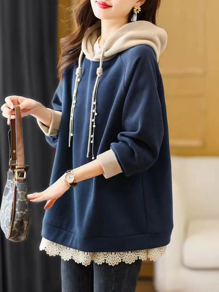 パーカー トレーナー プルオーバー フード付き レース トップス フェイクパール レディース 韓国 パーカー