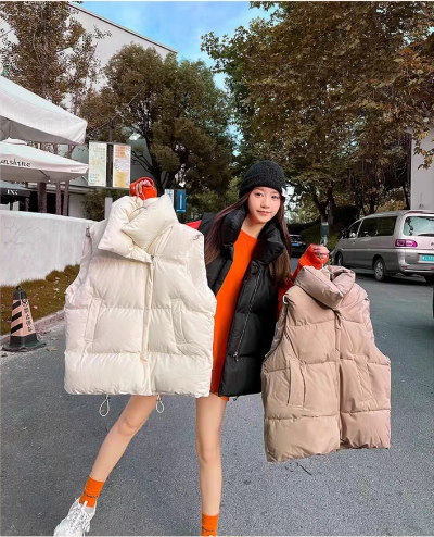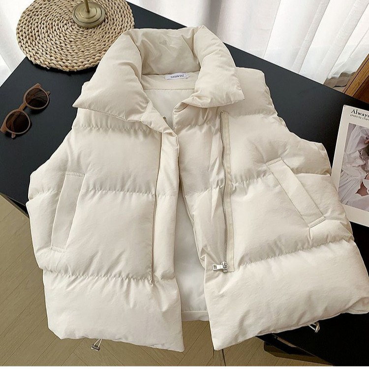 中綿ベスト レディース 韓国 アウター 秋冬 冬 防寒 かわいい おしゃれ ベージュ もこもこ ベスト