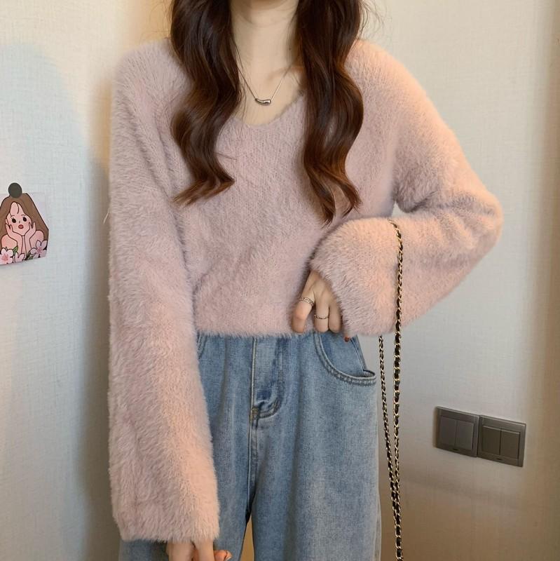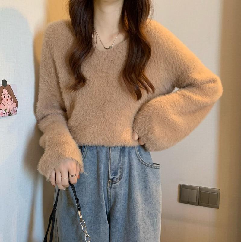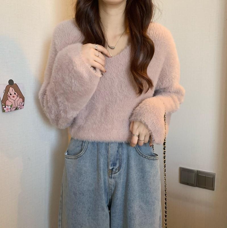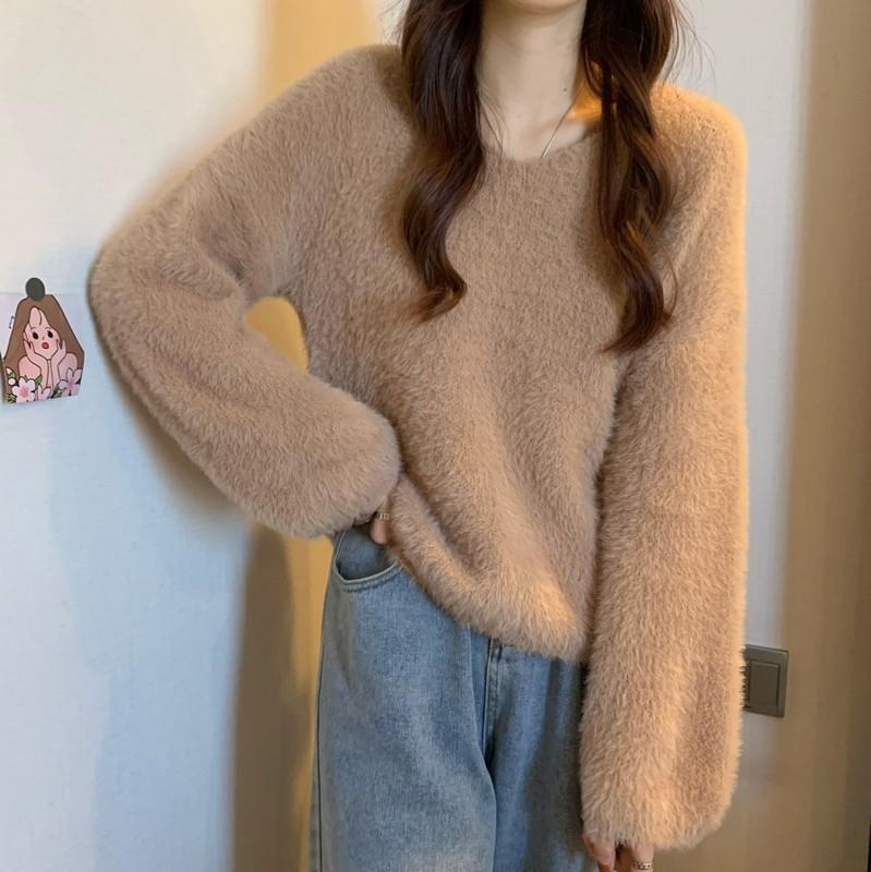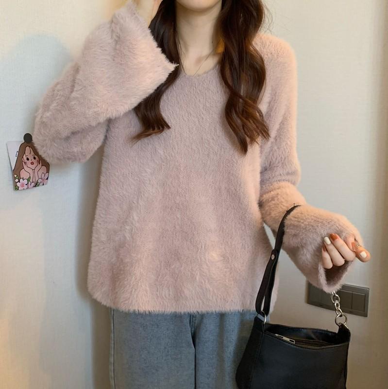 クリスマスコスプレ ベーシックニット 裏起毛フアッションニット ミンク ニット ふんわり質感トップス もこもこ ニット モヘアタッチ レディース トップス 長袖 厚手vネックトップス 着
