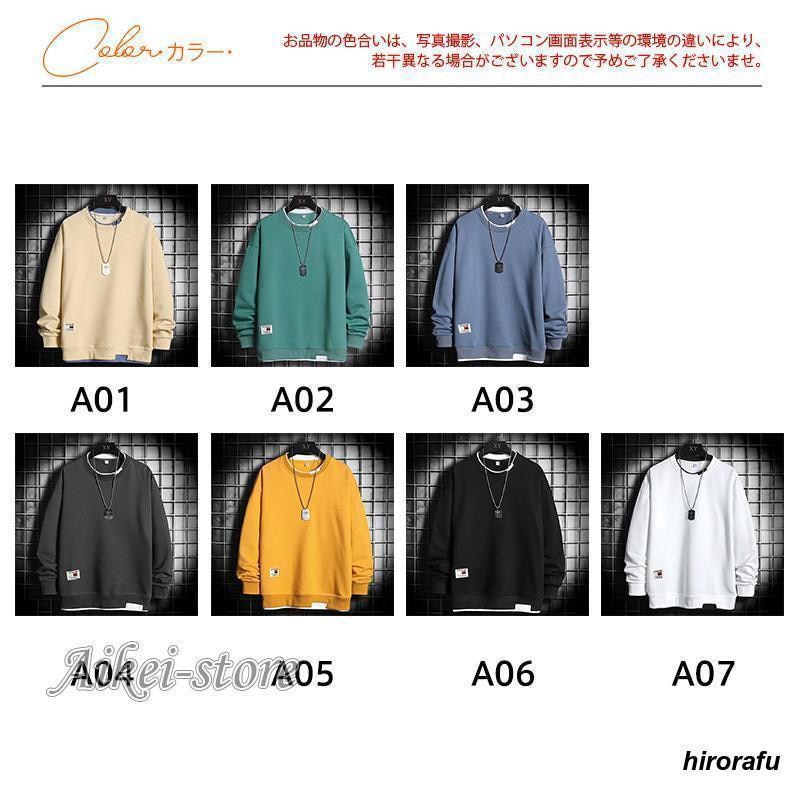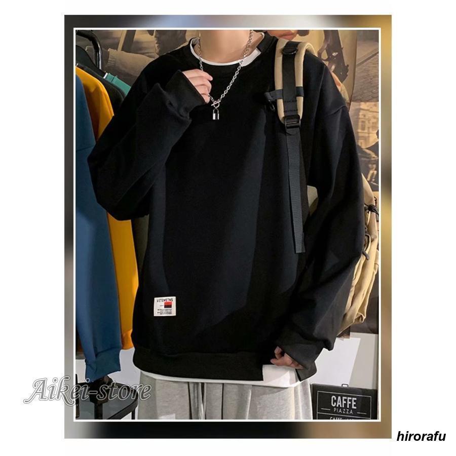 新入庫 トレーナー メンズ 裏起毛 クルーネック プルオーバー フェイクレイヤード スウェット Tシャツ ゆったり 無地 厚手 スポーツ 春秋 冬 おしゃれ