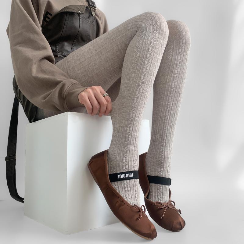 レディースファッションストッキングオシャレ靴下足元 夜 指導 室 レトロ 麻 柄 ソックス 春秋 オートミール 色 糸 アウター スリミング ストッキング レディース