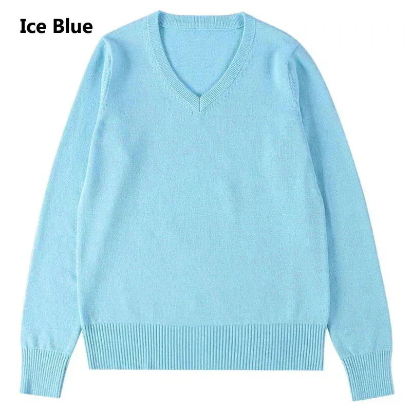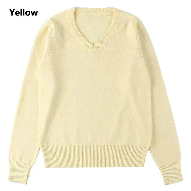 制服セーター10色100%綿コットンレディースメンズVネックトップスアウターチュニッ 韓国ファッシ ニット