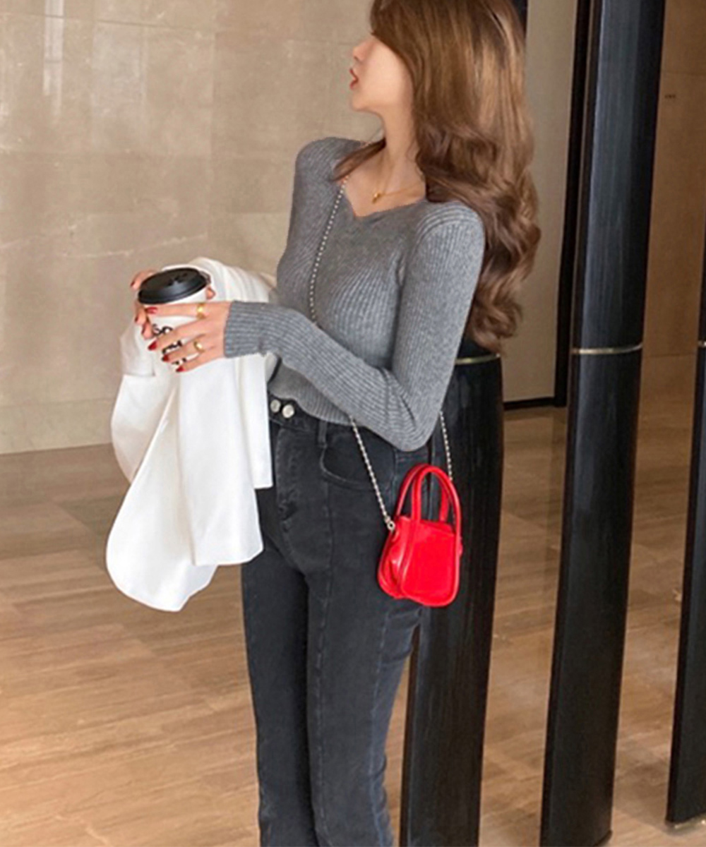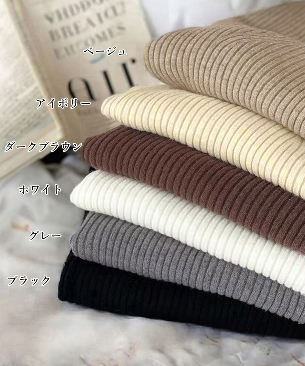 リブニットトップス レディース 大人秋服 百掛け 大きいサイズ 長袖 タートルネック ベーシックニット ニット