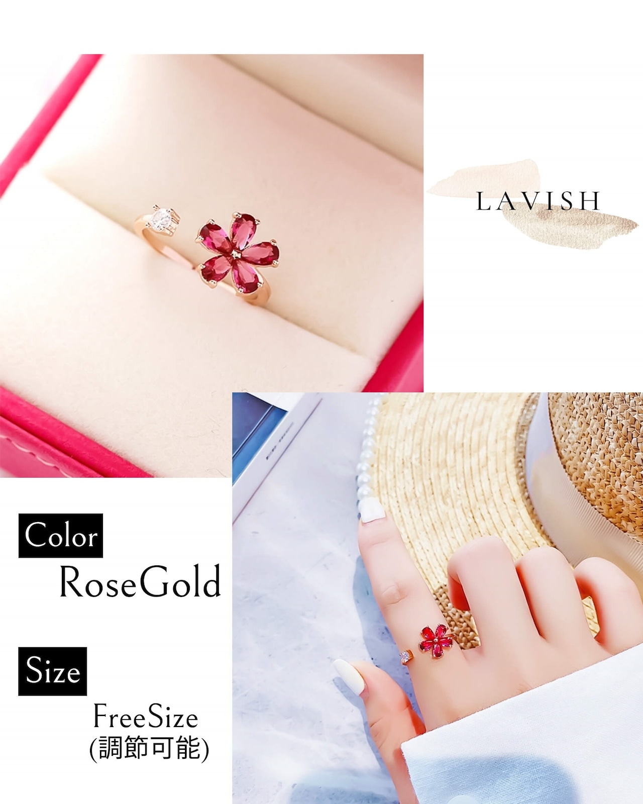 LAVISH フラワークォーツリング フリーサイズリング調節可能リング シルバーリング ギフトレディース メンズ 指輪アクセサリー メガ割 韓国ファッション プレゼント