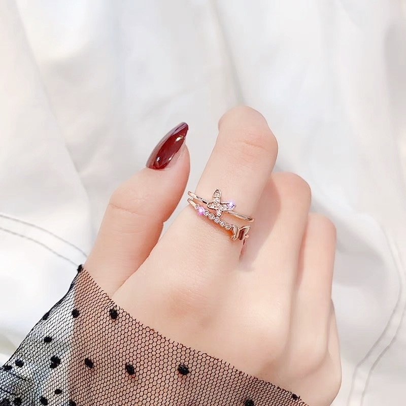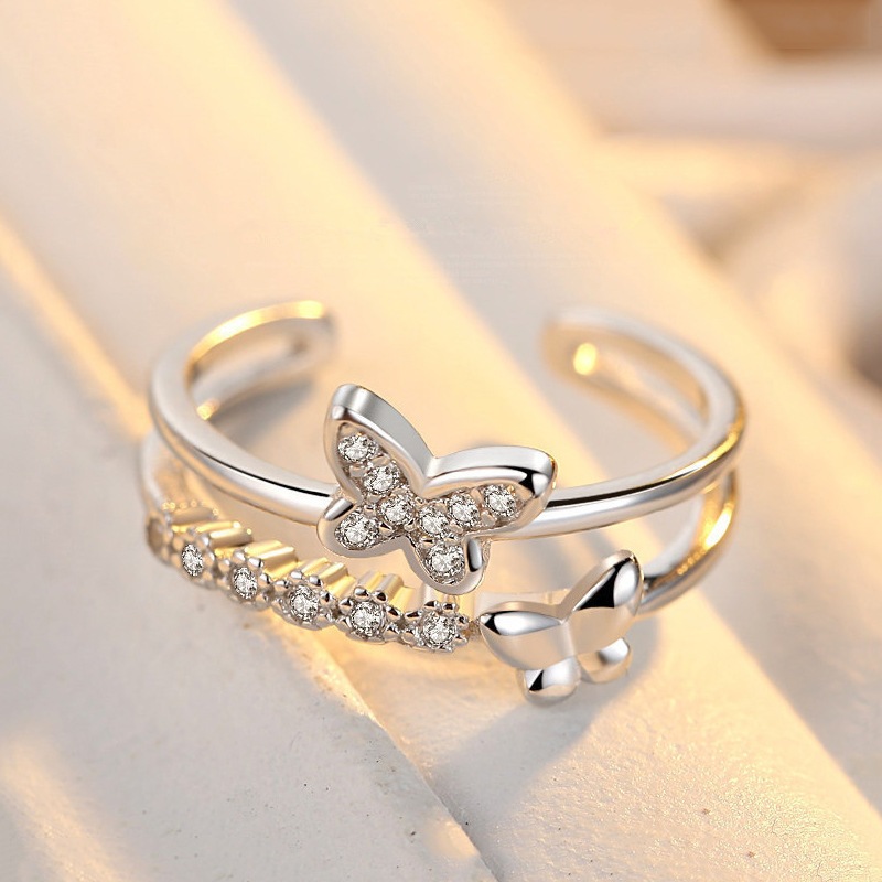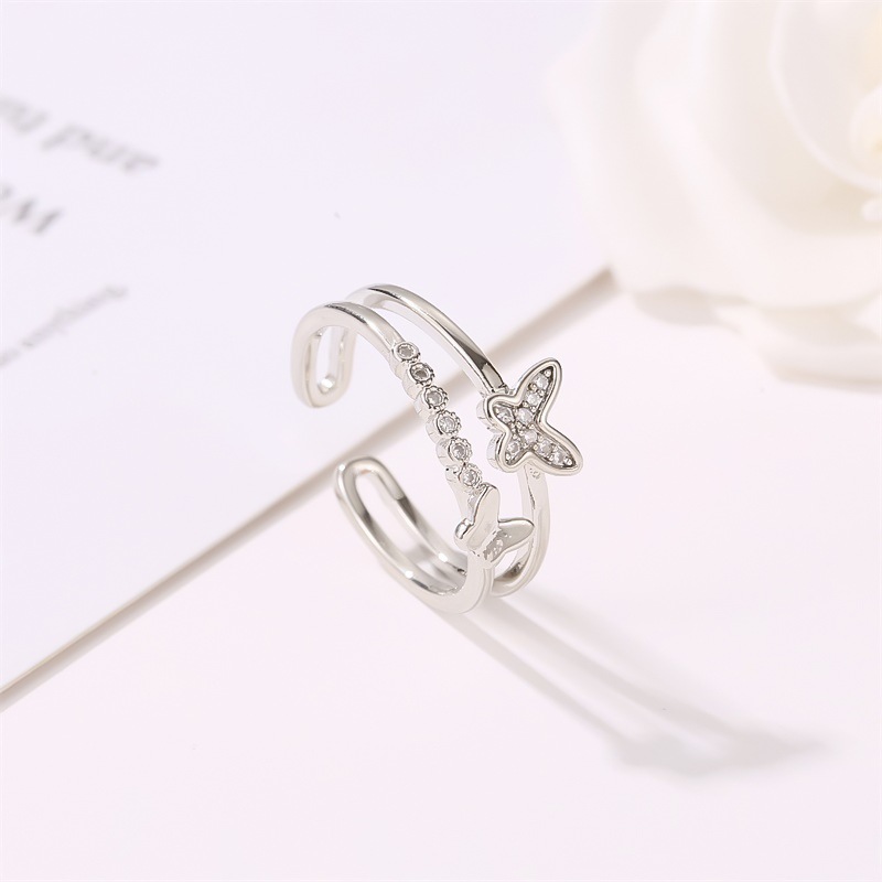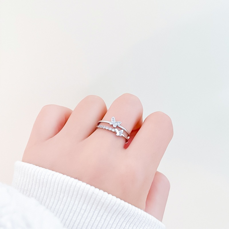 LAVISH バタフライフレームリング フリーサイズリング調節可能リング シルバーリング ギフトレディース メンズ 指輪アクセサリー メガ割 韓国ファッション プレゼント