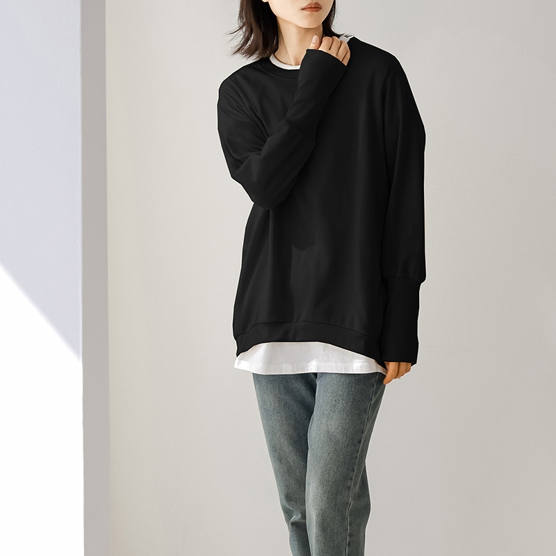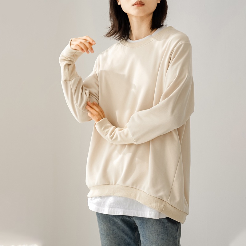 ポケット付き レディーストレーナー スウェット リブ長 トップス 長袖 無地 Tシャツ カットソー
