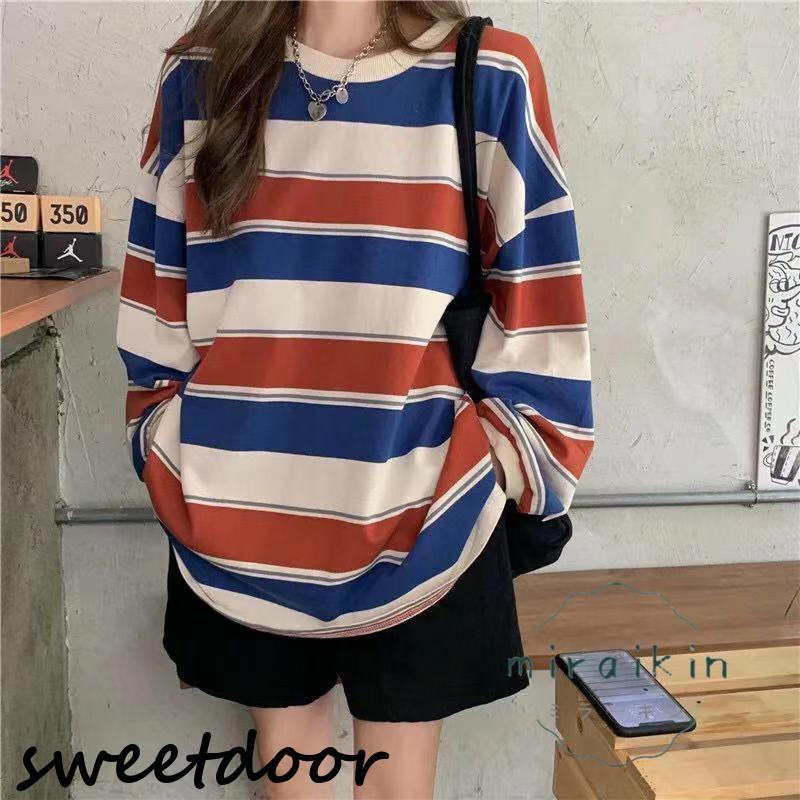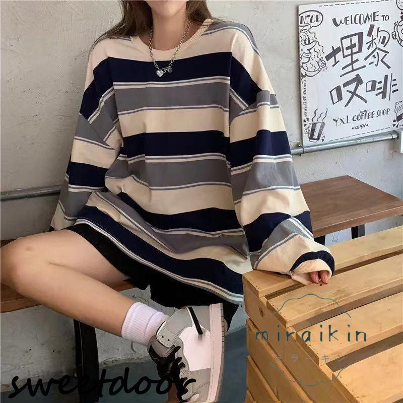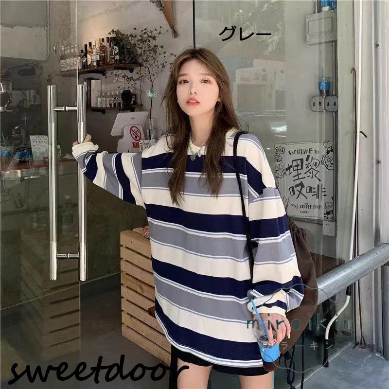 カットソー レディース トップス Tシャツ 春 ロンT ボーダー 長袖 tシャツ ロング ゆったり 大きいサイズ リラックス 体型カバー きれいめ ワイドボーダー