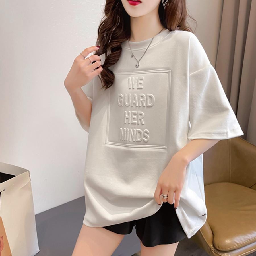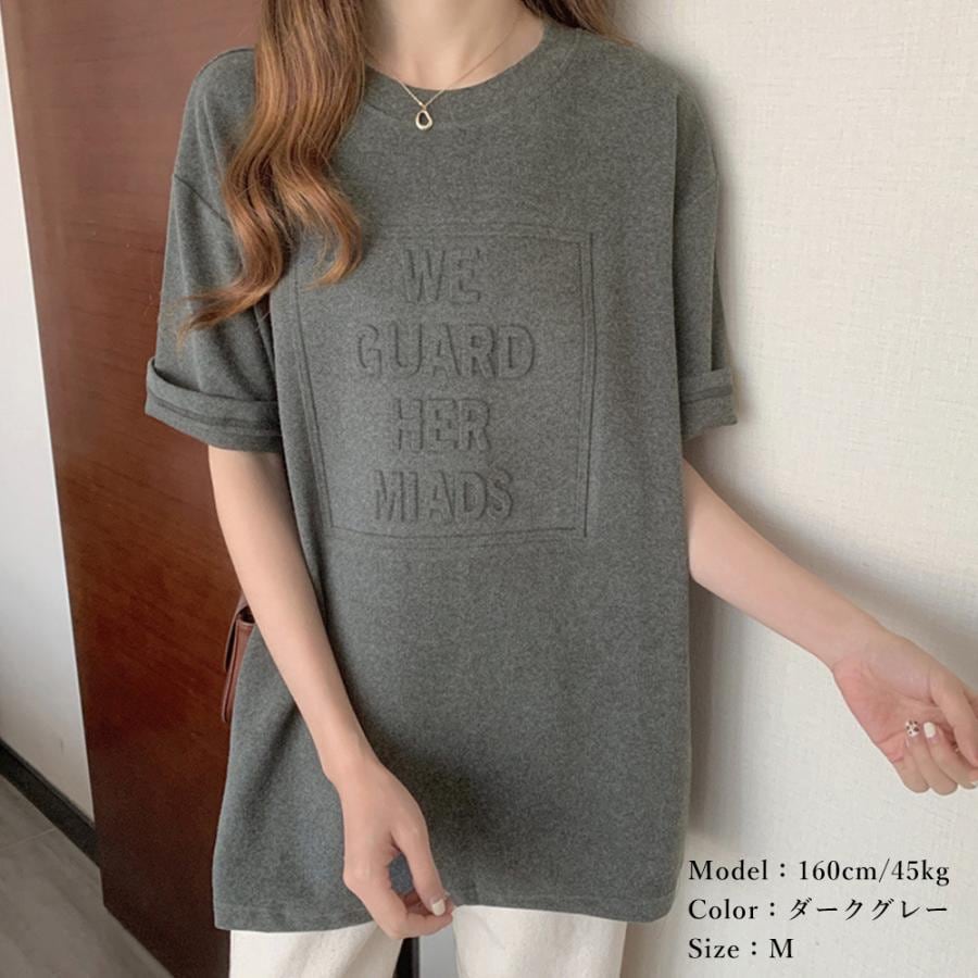 立体ロゴtシャツ 韓国チュニックロンT Tシャツ カットソー
