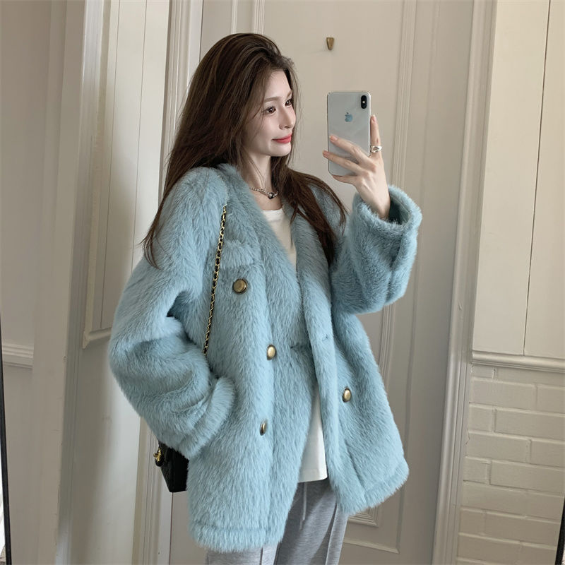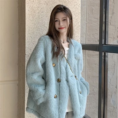 冬アウター 冬 やさしい だるい ダウンを厚くする ミンクの毛皮 青 コート着 レディー 秋冬 韓国系 高級 ファッション その他 アウター