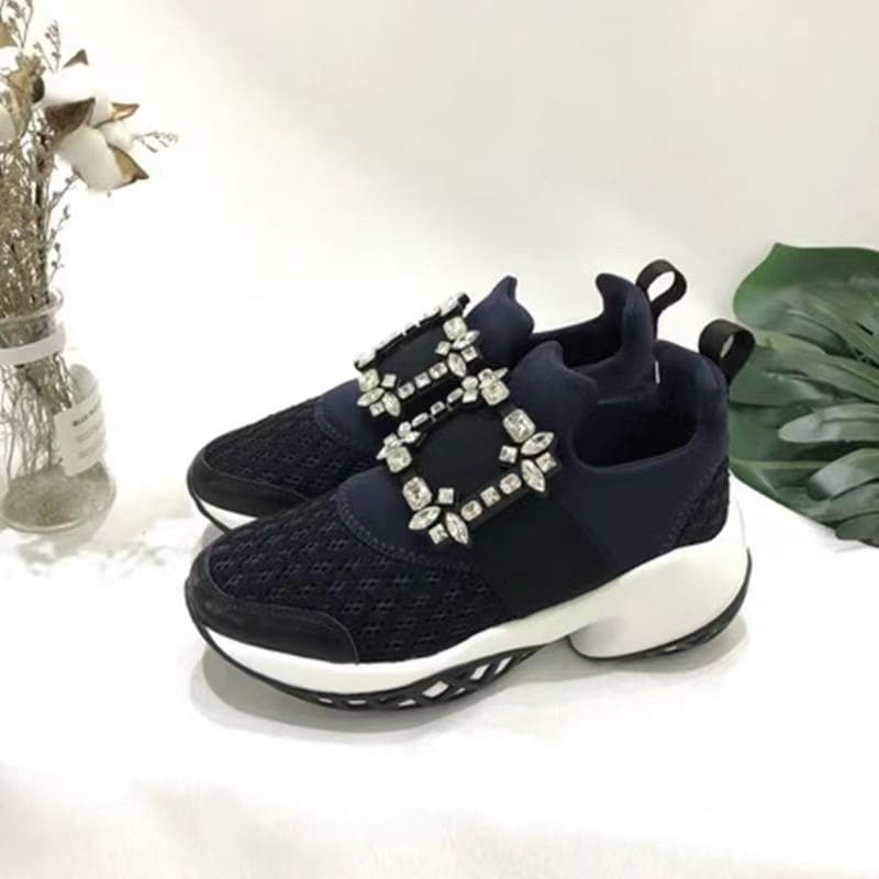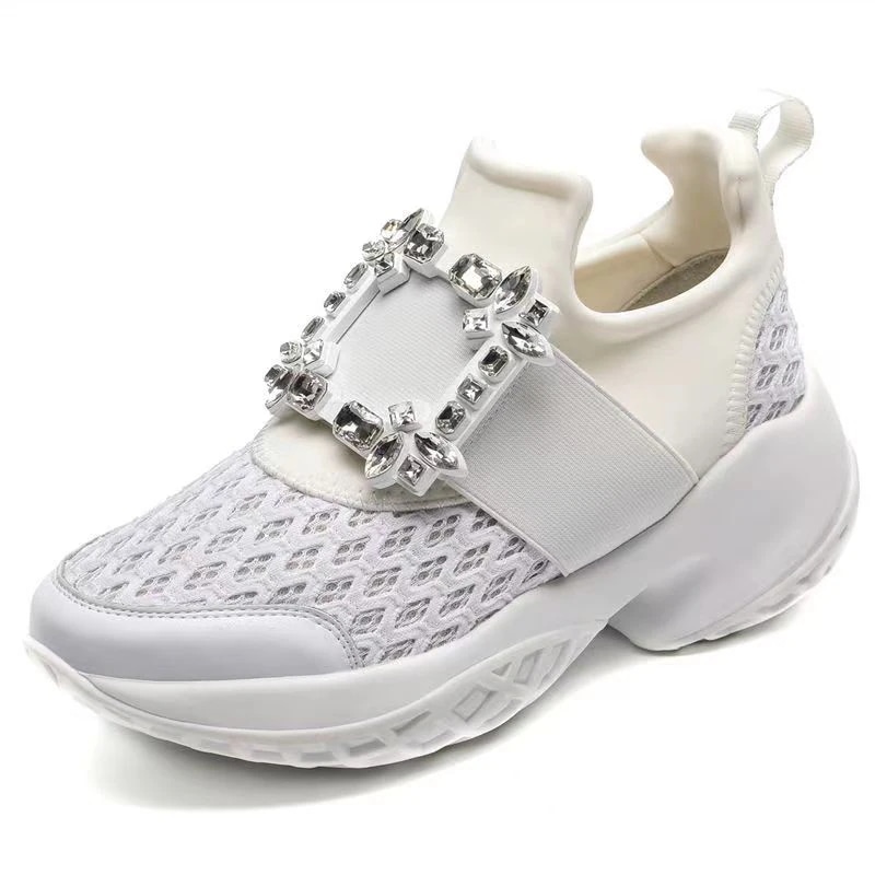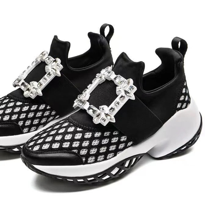 スニーカーシューズ メッシュ スポーツシューズ レディース 厚底 スクエア ビジュー モチーフ 黒 インヒールスニーカー