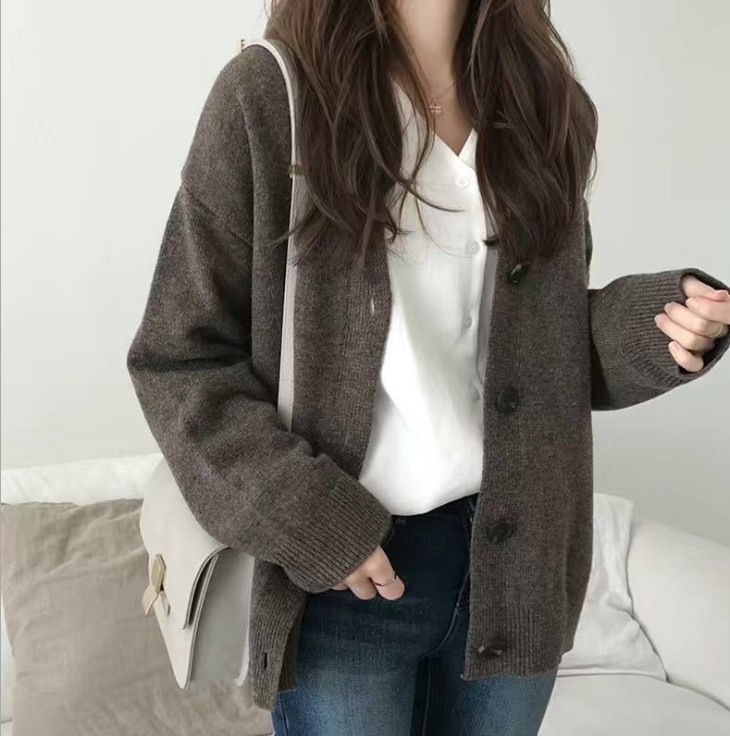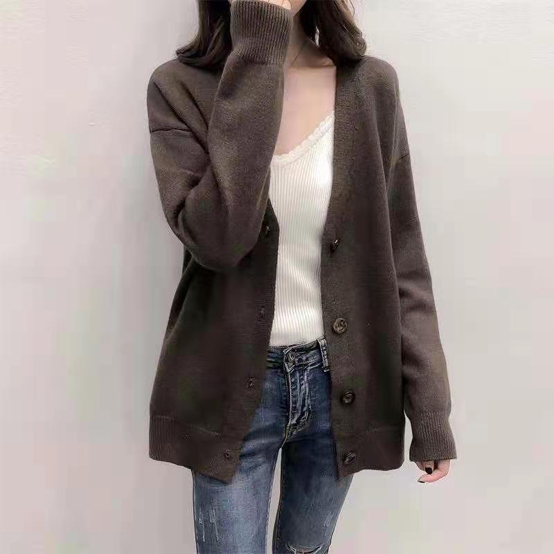 百掛け カーディガン タートルネックニューデザイン セーター ゆったり ニットカーディガン 着痩せラウンドネックニット 怠惰 人気なリブニット カーディガン ショット丈