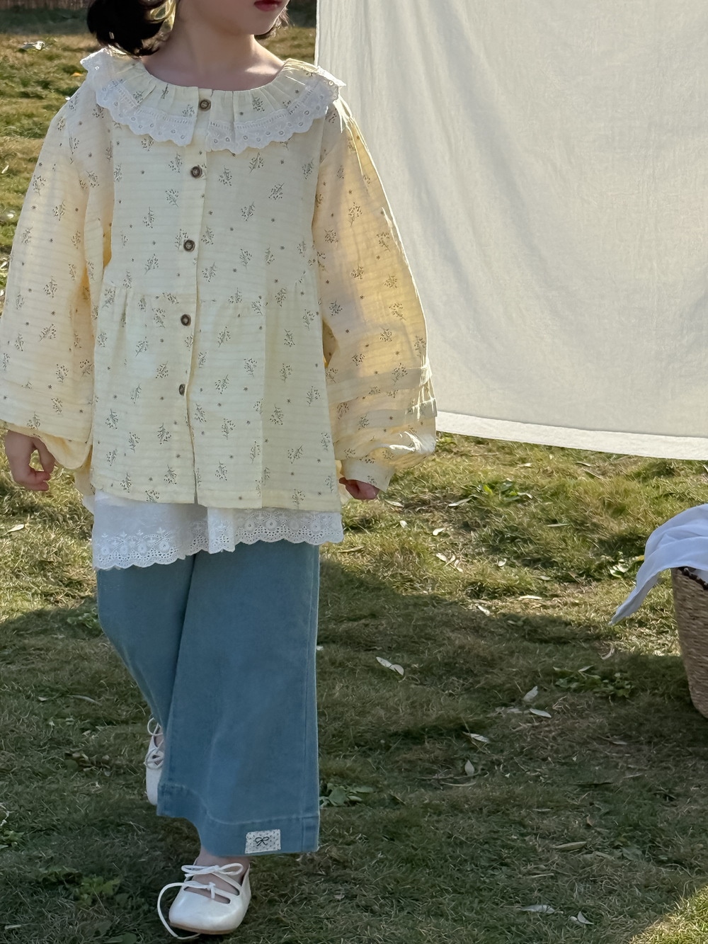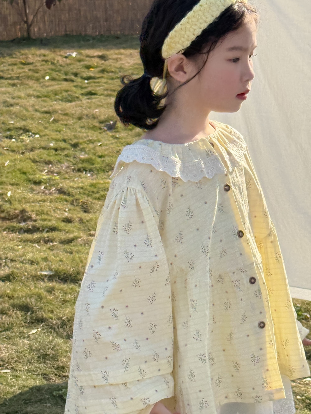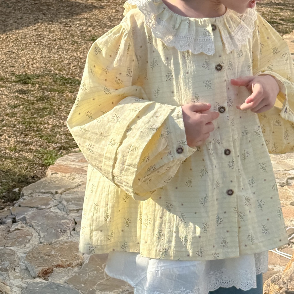 子供シャツ2025春モデル女性赤ちゃん韓国版レース襟泡袖シャツ子供カジュアルゆったり花柄トップス Tシャツ ブラウス