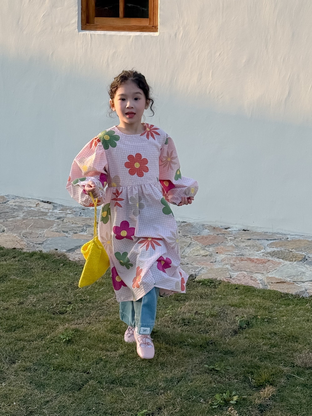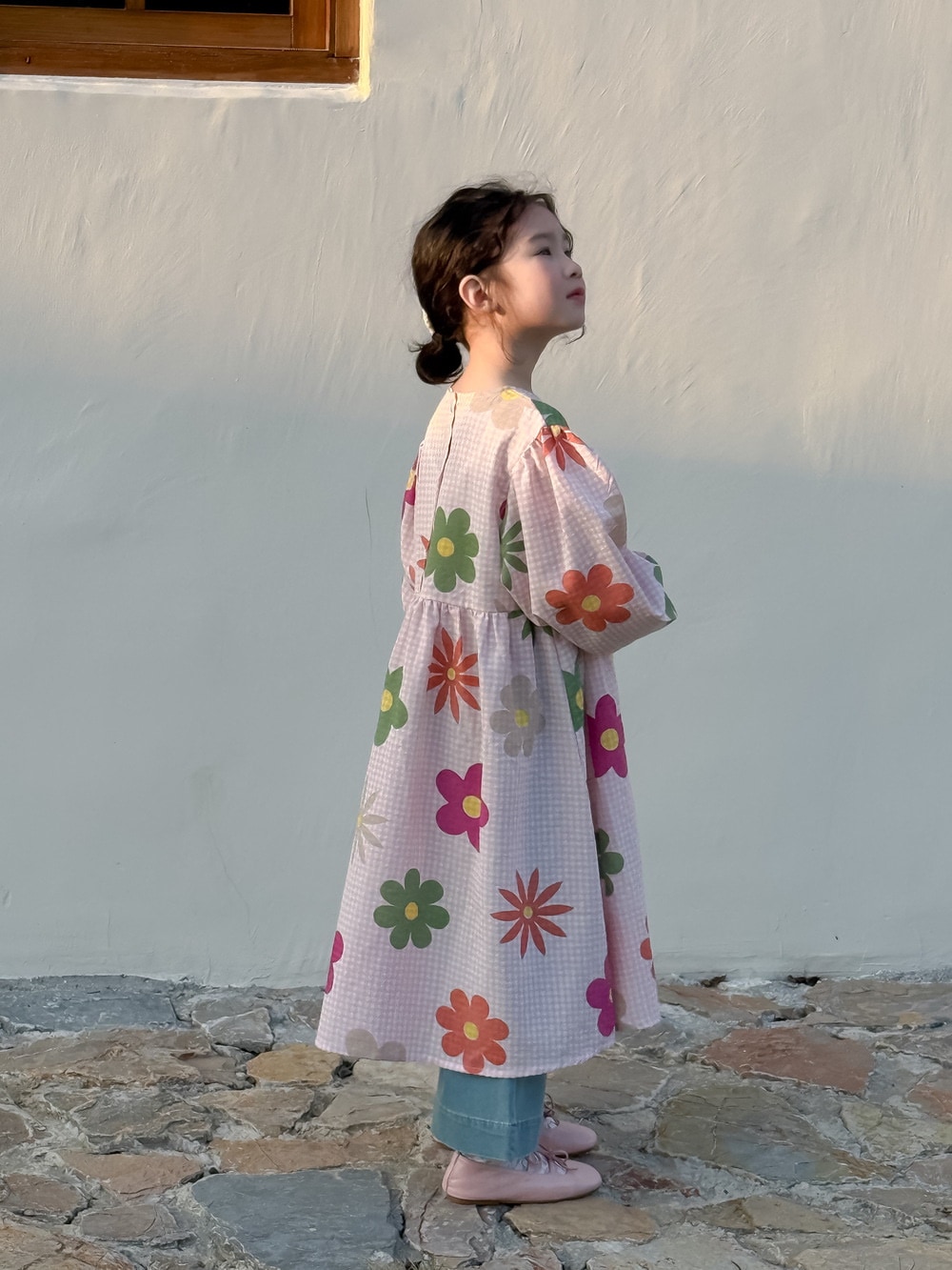 キッズスカート2025春モデル女性ベビー韓国版満版カラーフラワーワンピース子供カジュアルゆったりプリンセスロングスカート 子供服 女の子 ワンピース