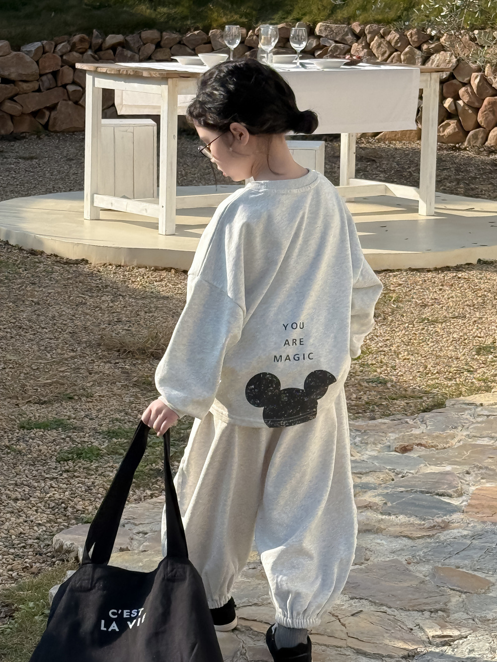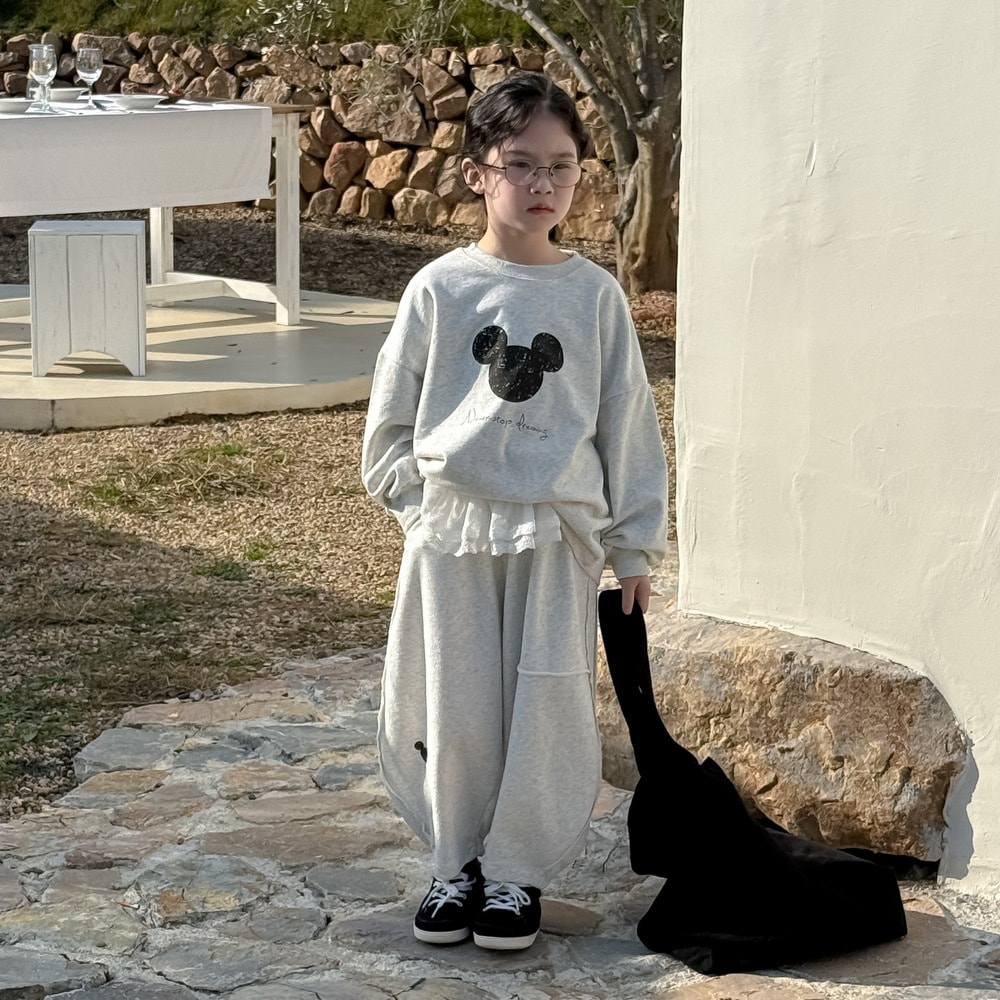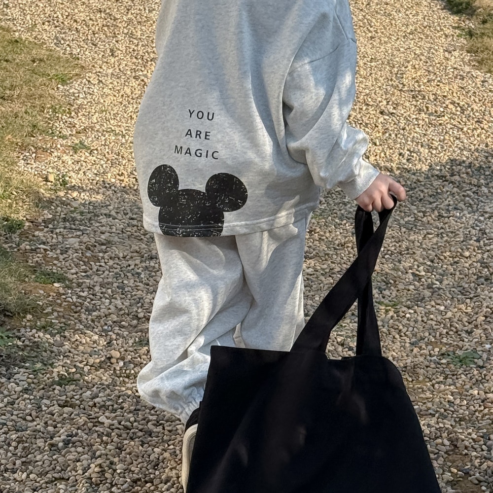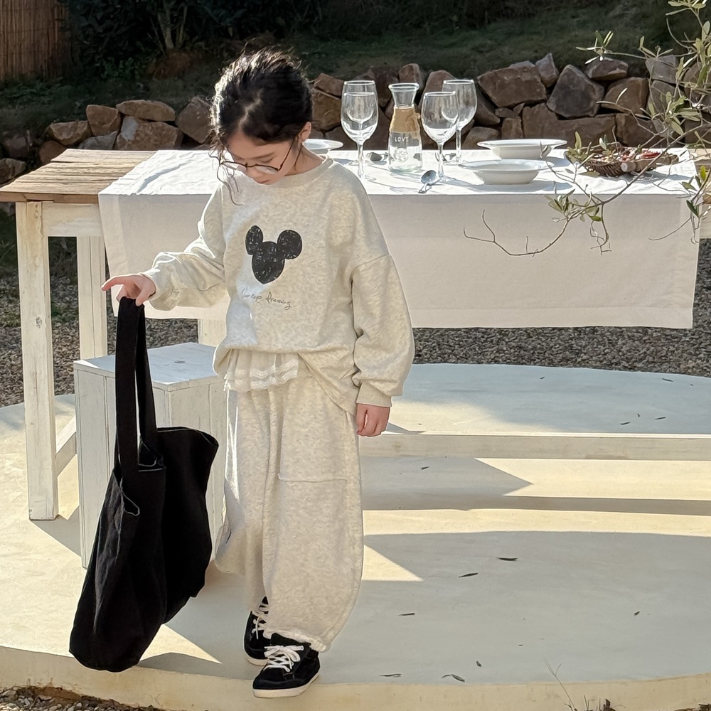キッズスーツ2025春モデル女の子韓国版アルファベットキャラクターネズミのロンTセット子供丸首カジュアル2点セット 子供服 女の子 セットアップ