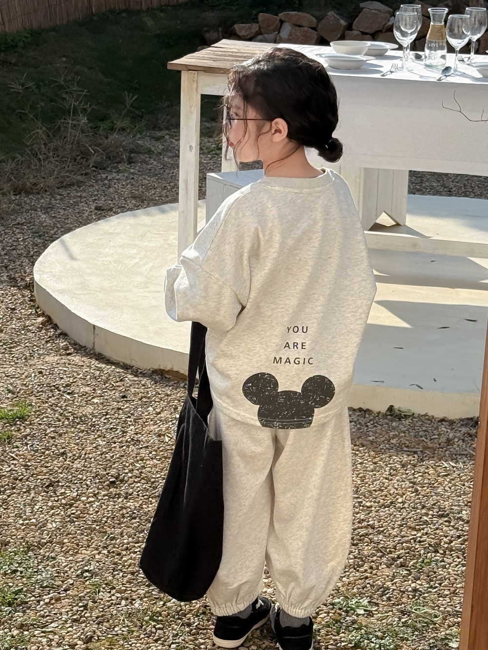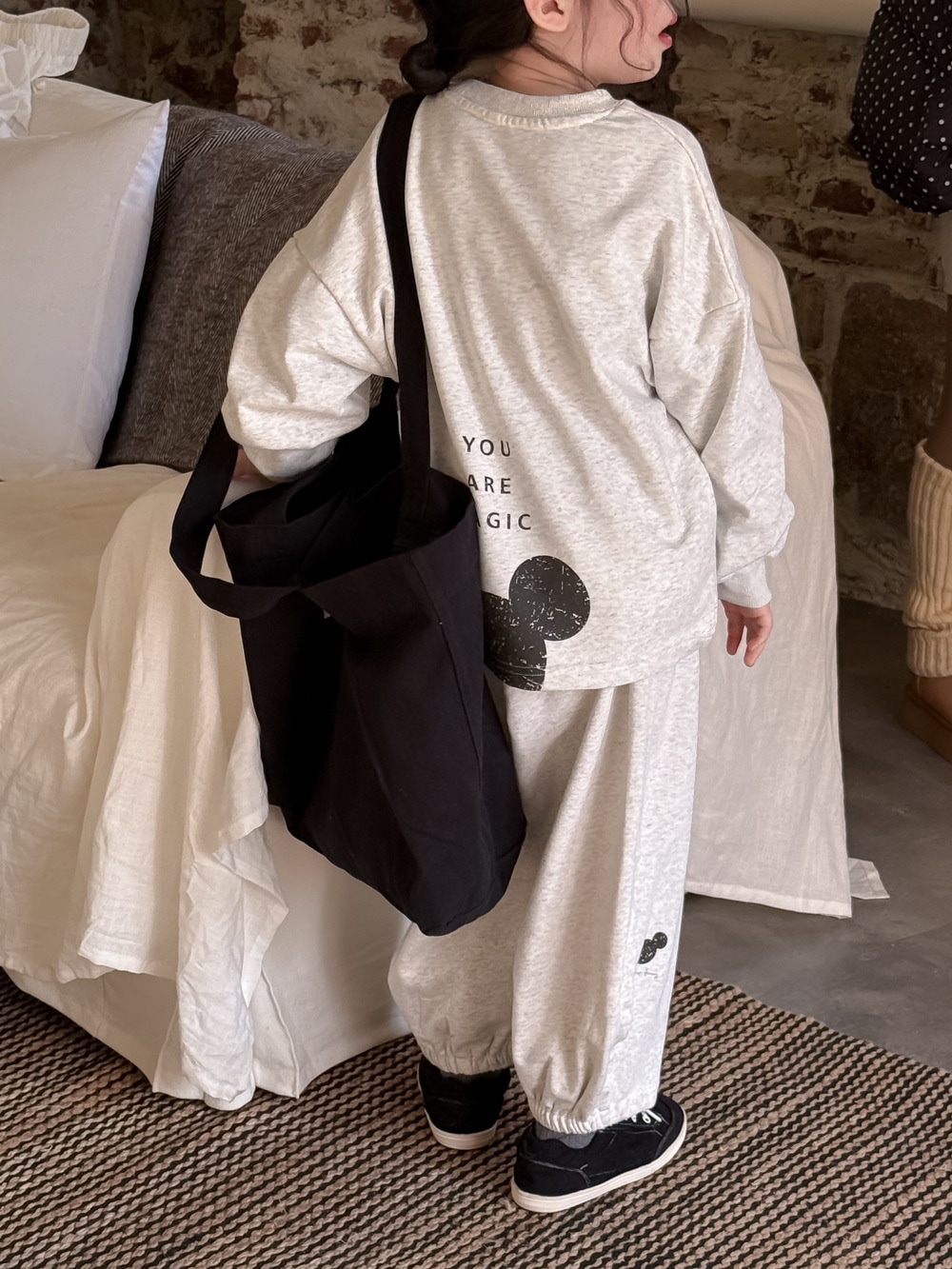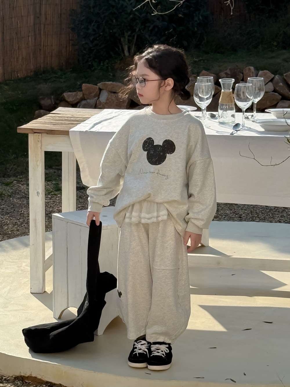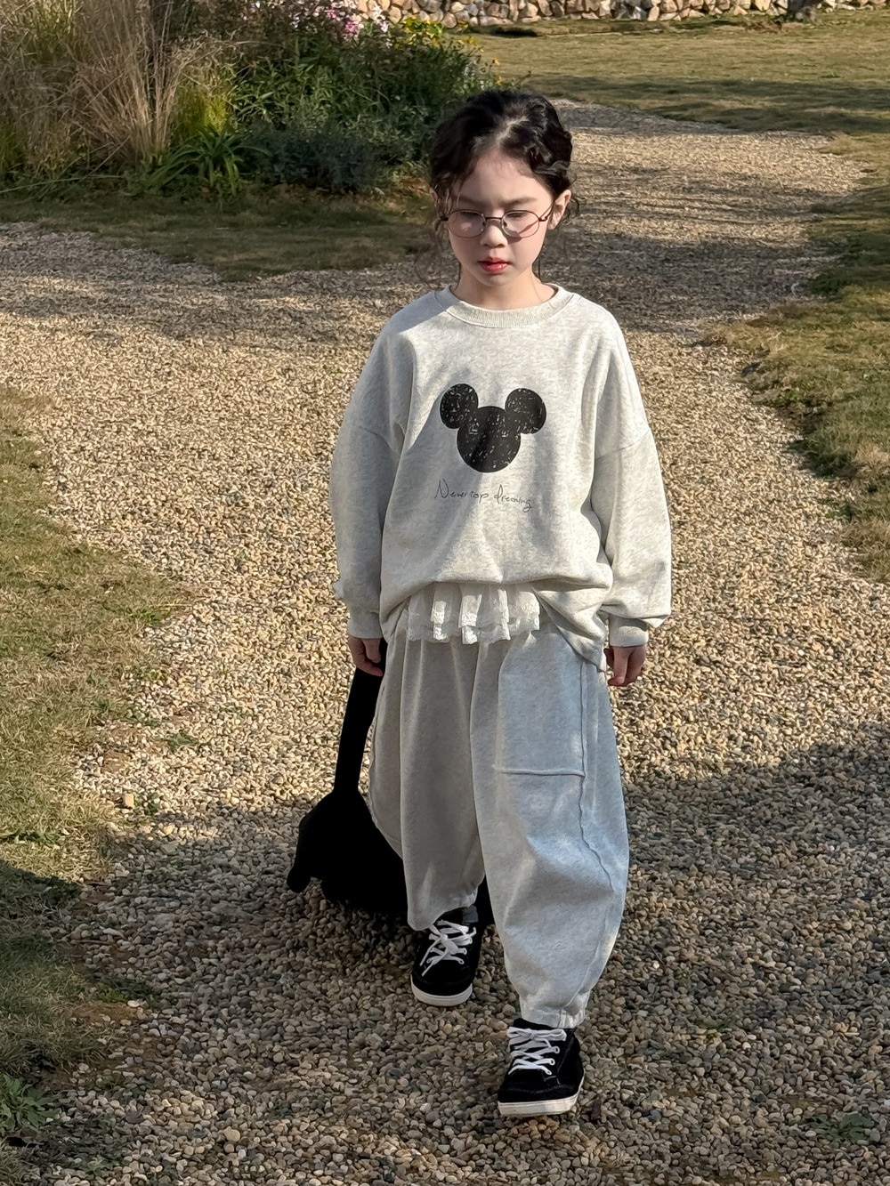 キッズスーツ2025春モデル女の子韓国版アルファベットキャラクターネズミのロンTセット子供丸首カジュアル2点セット 子供服 女の子 セットアップ