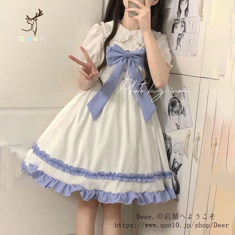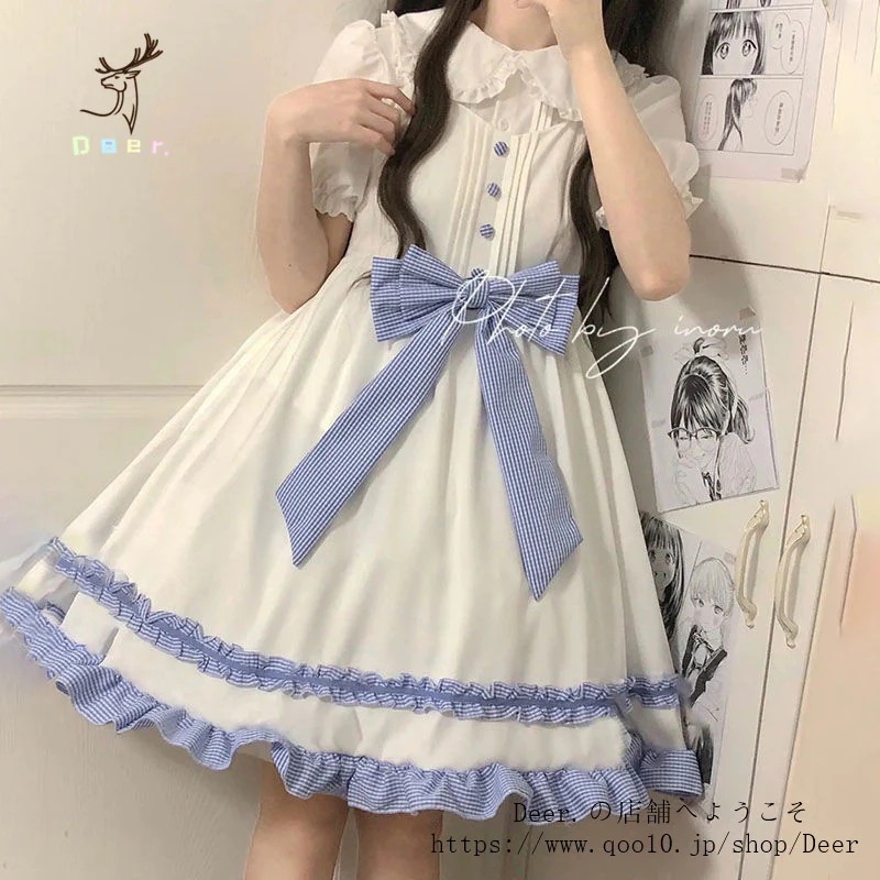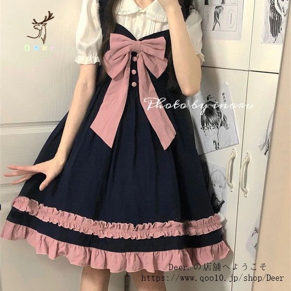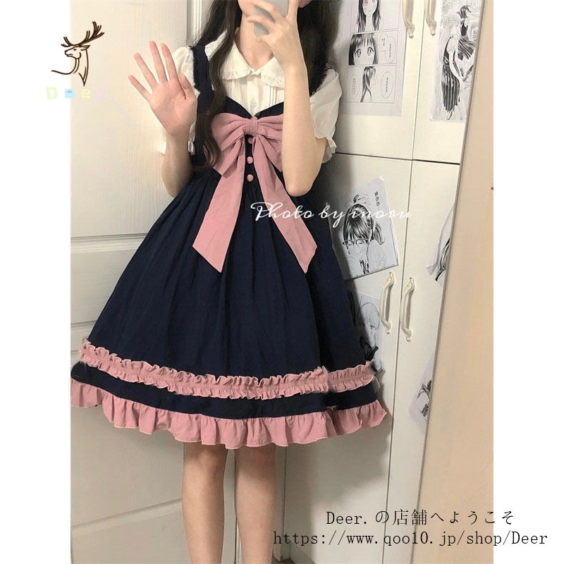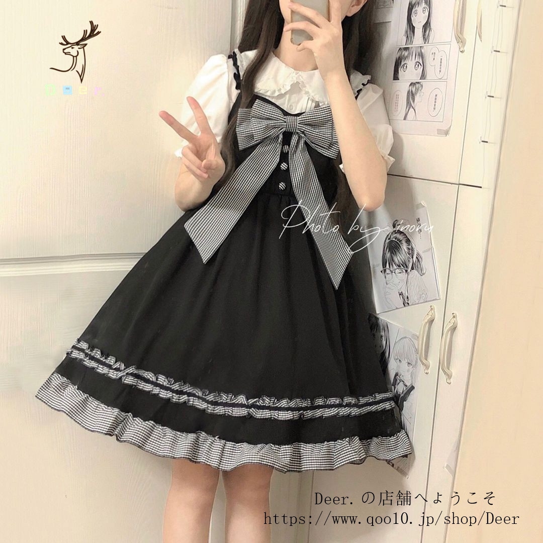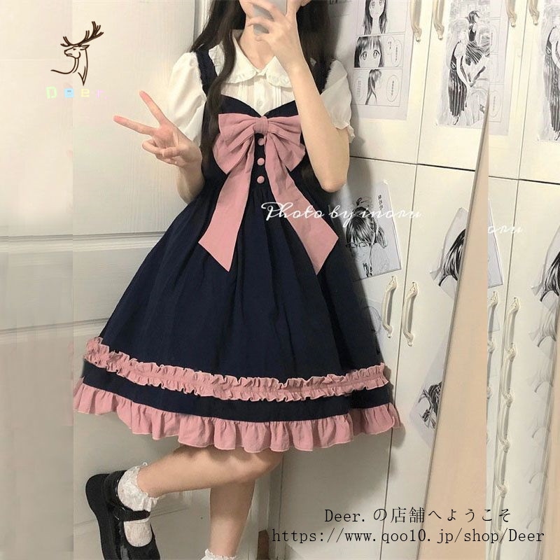 和風スイートソフトガールリボンロリータストラップワンピース女子学生+ドールカラーシャツ2点セット 便利 2wayワンピース 着物