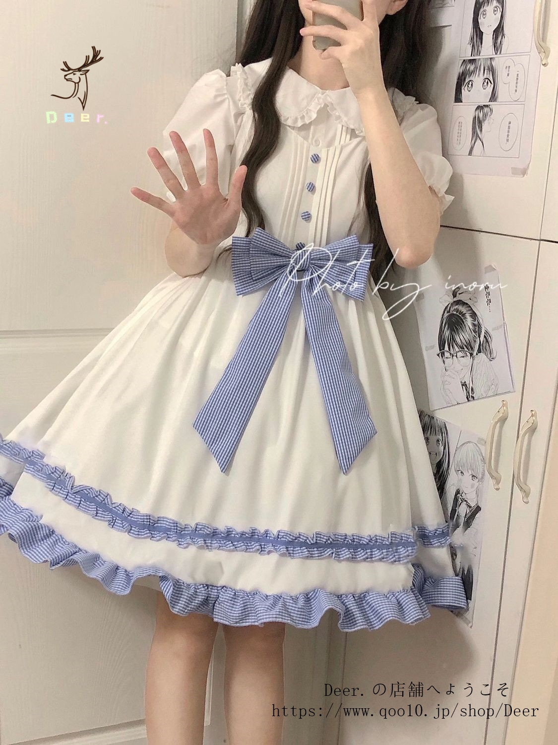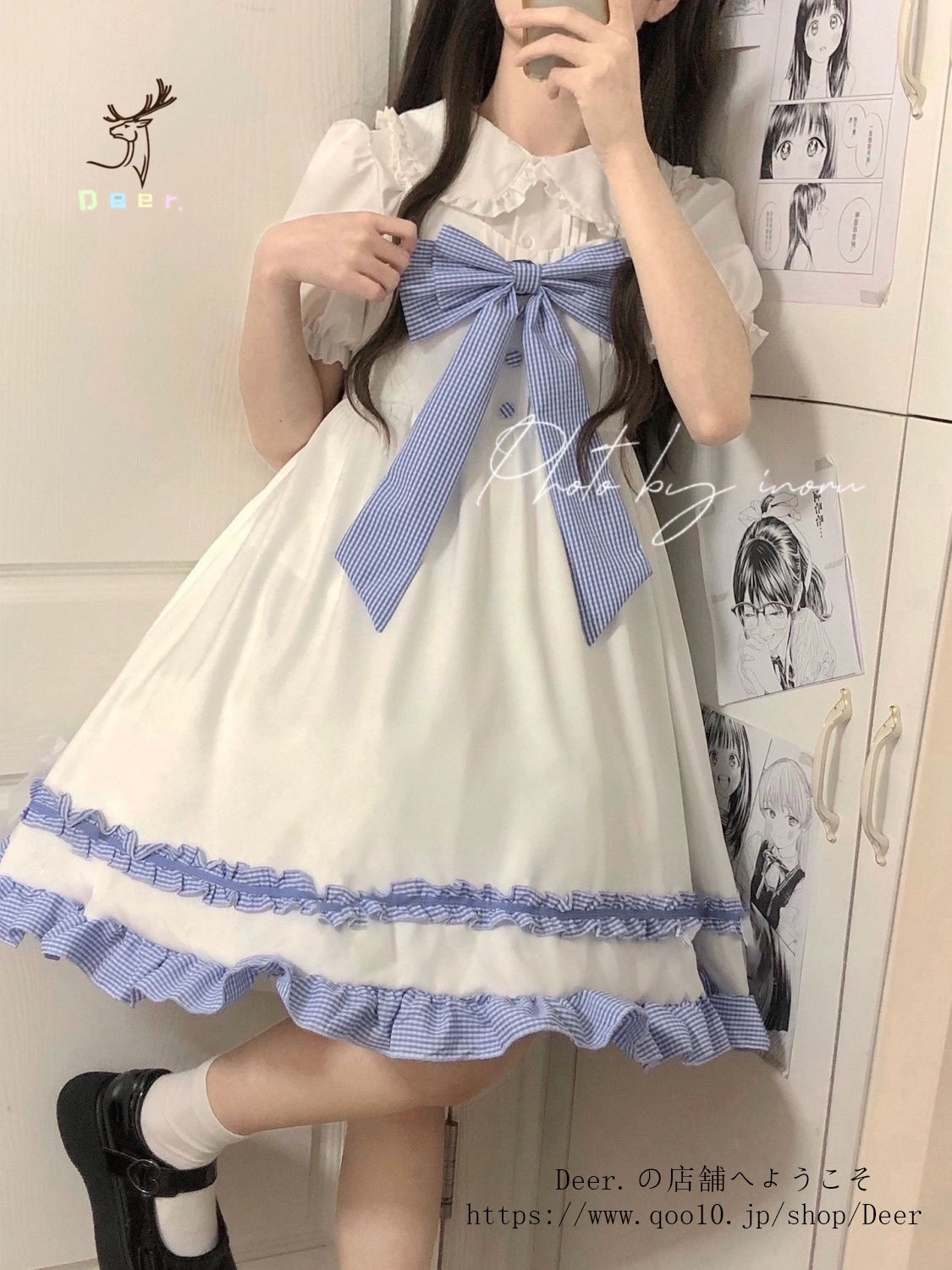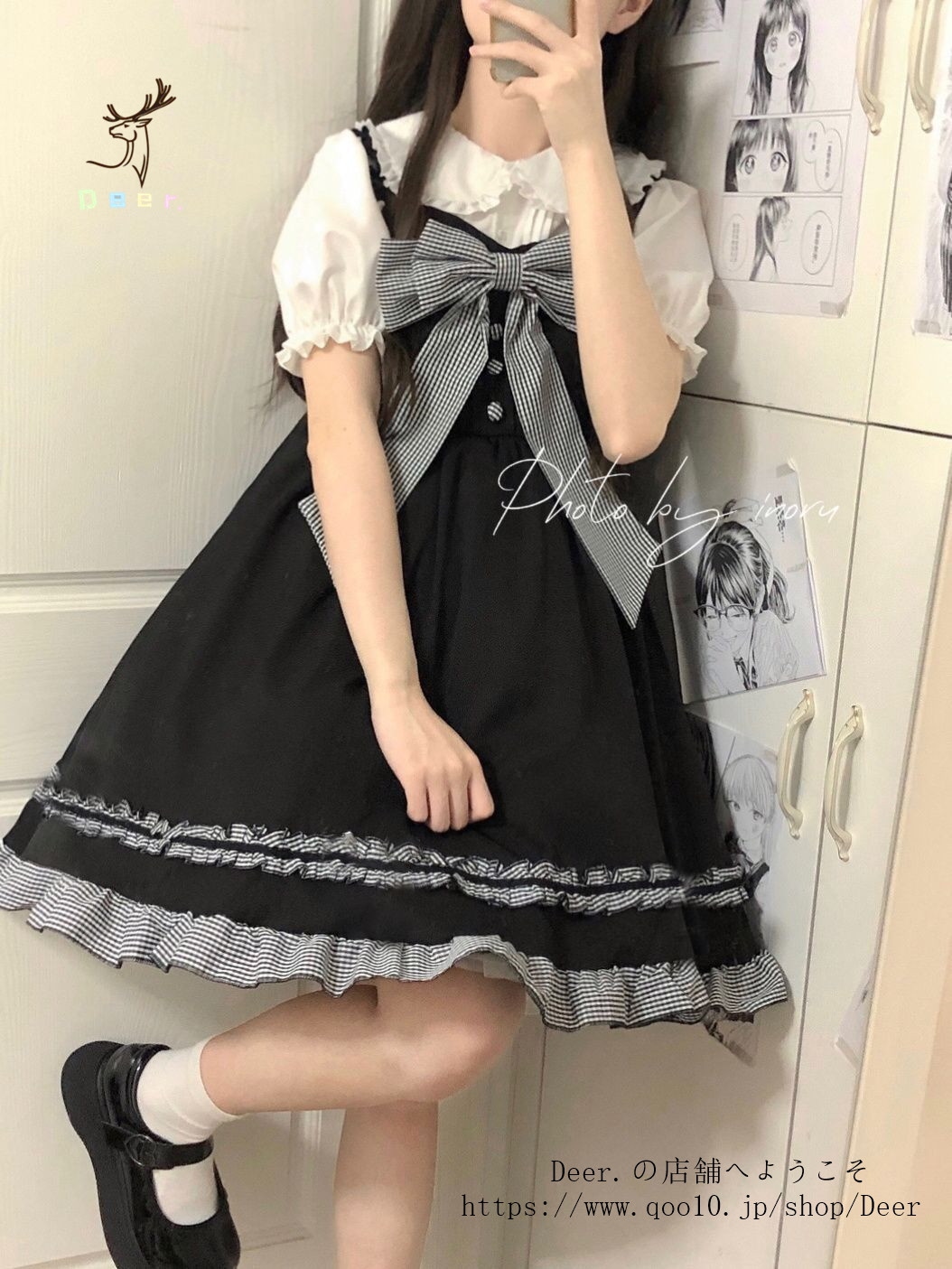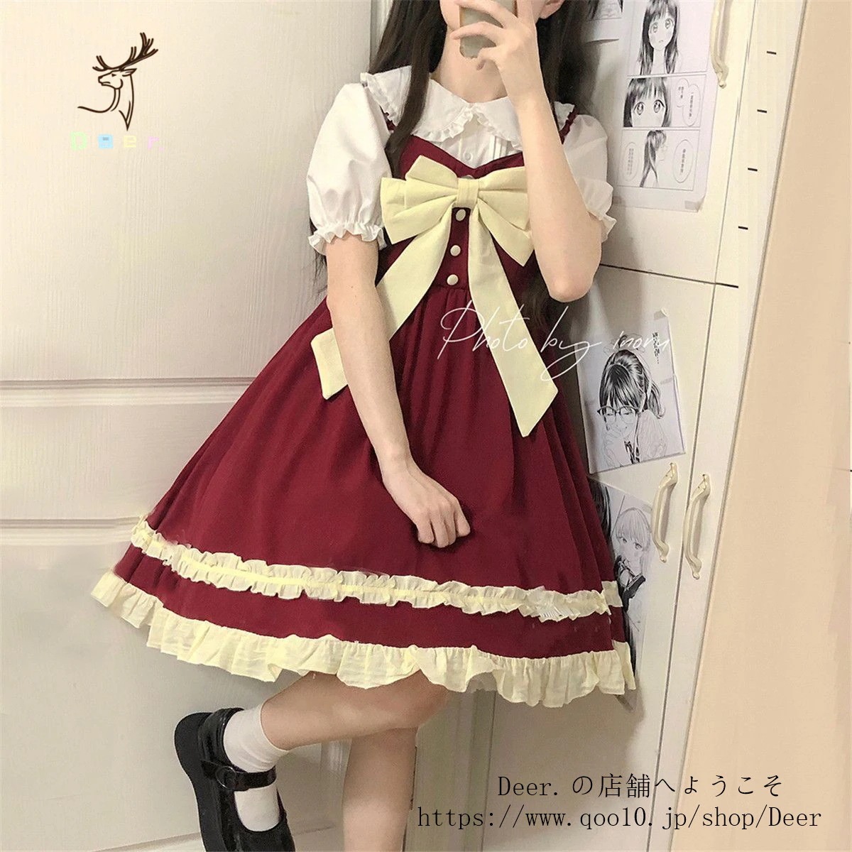 和風スイートソフトガールリボンロリータストラップワンピース女子学生+ドールカラーシャツ2点セット 便利 2wayワンピース 着物