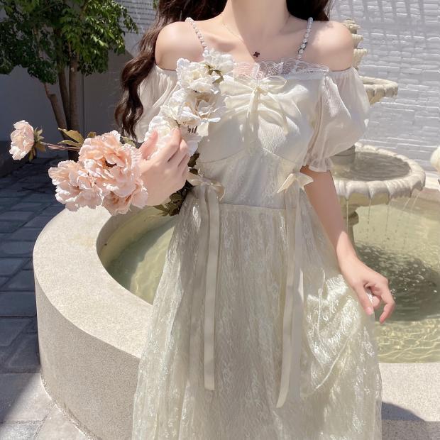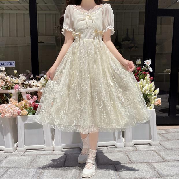 2024 新作 可愛い 着痩せ バブル袖 レース ワンピース ロリータ プリンセススカートサンタコスプレ コスプレ 蝶結び コスチューム