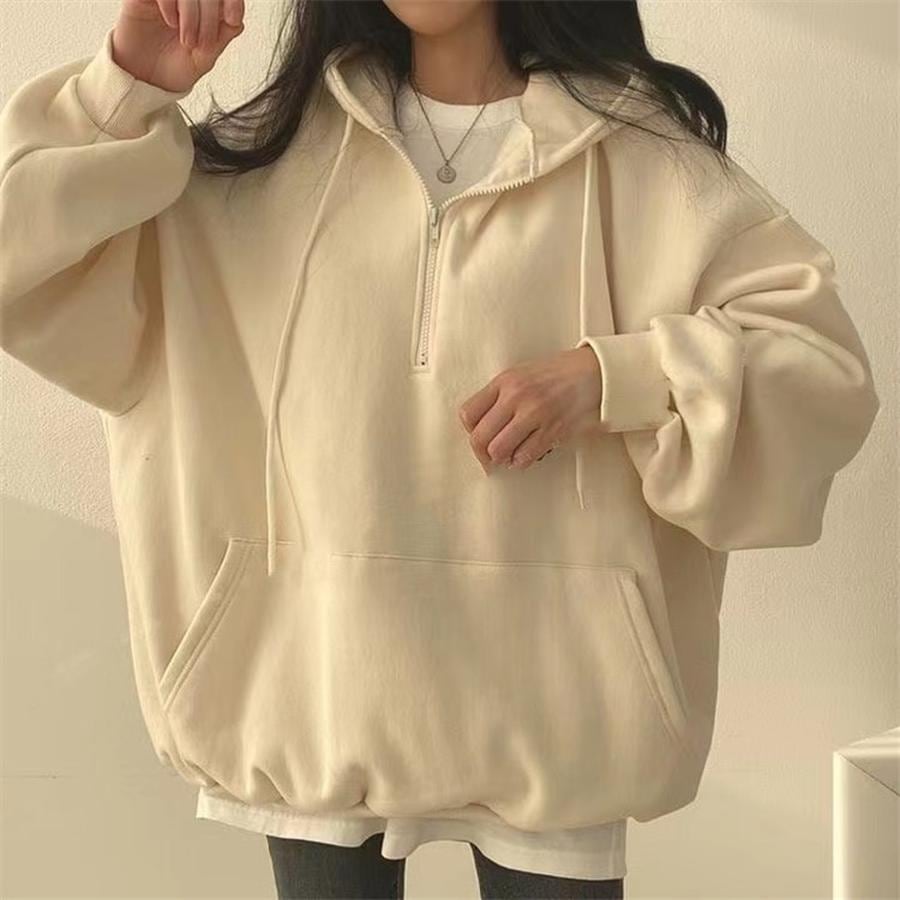 韓国 パーカー純粋な色 ハーフジップ裏起毛パーカー 2023新モデル 韓国ファッション女子 スーパーきれいな秋冬 カジュアルな衛衣 厚い 帽子付パーカー レディーストップス