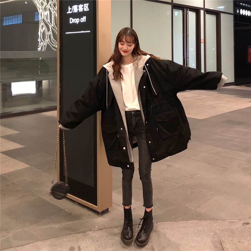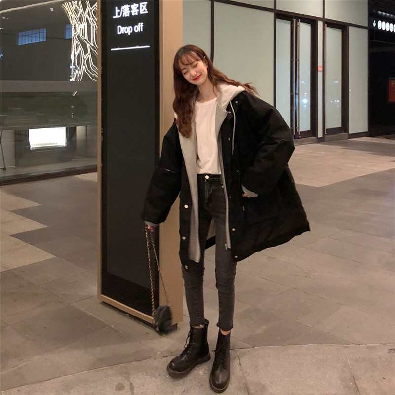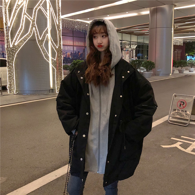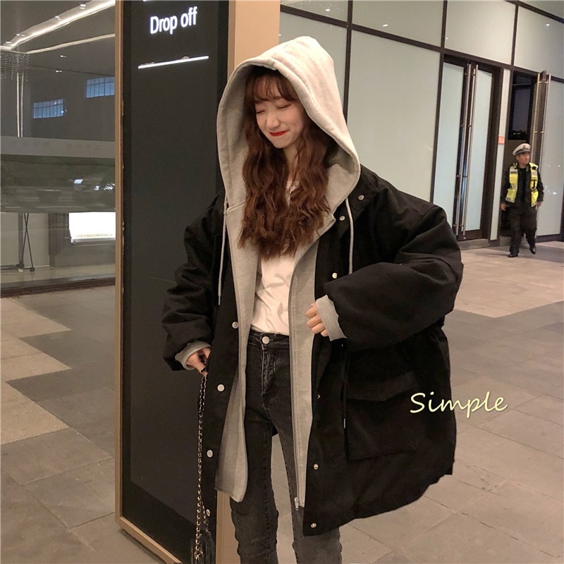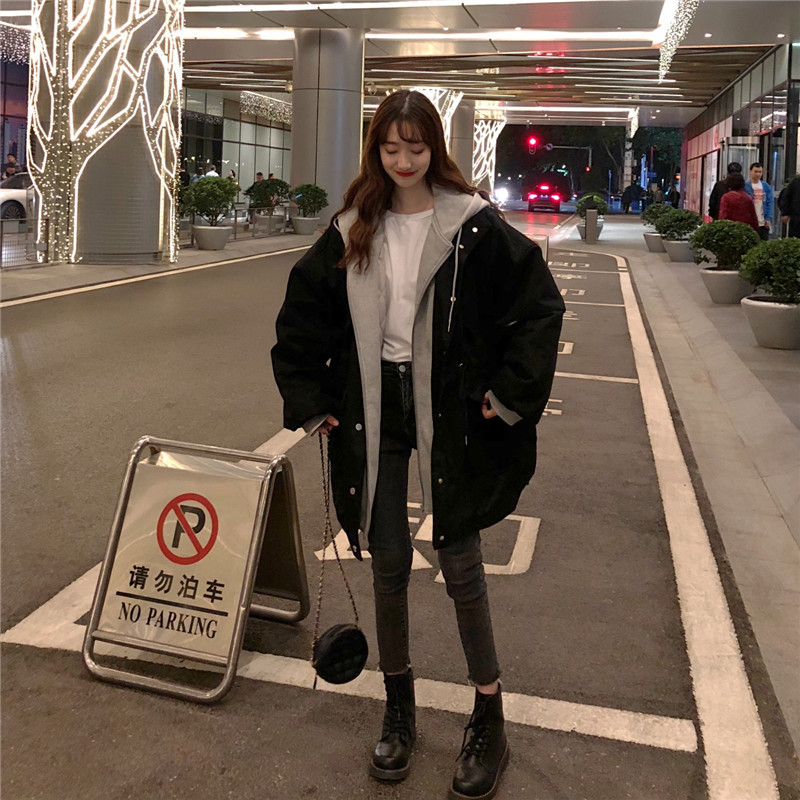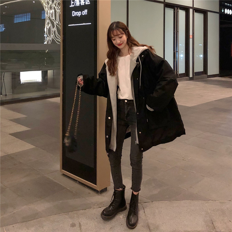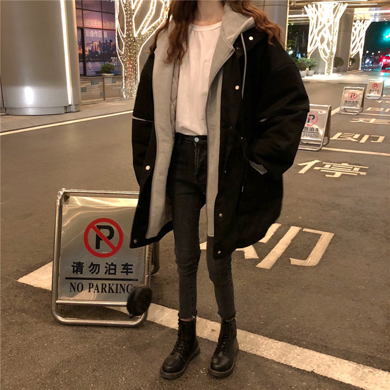 冬アウター秋冬ゆったり フェイクレイヤード フード付き セミロング 厚手 ウォーム 中綿コートおしゃれライダース2022はボアで決まり 人気ボアアウターキルティングアウター
