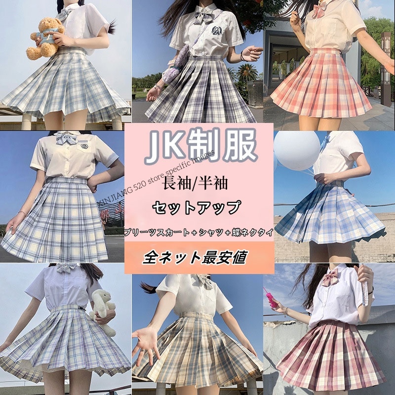 激安販売 急速出荷 JK制服 3点セット 半袖 長袖セットアップ プリーツスカート ミニスカート 半袖 長袖 ブラウス 蝶ネクタイ女子 高校生 制服 文化祭 学园祭 高校生中学