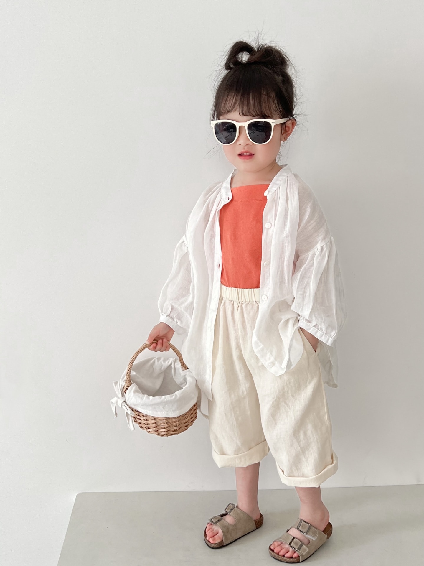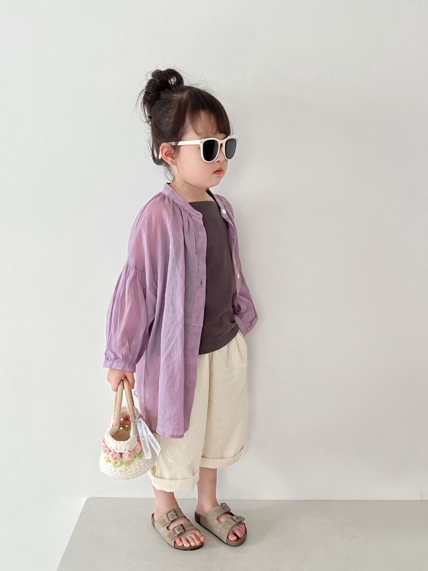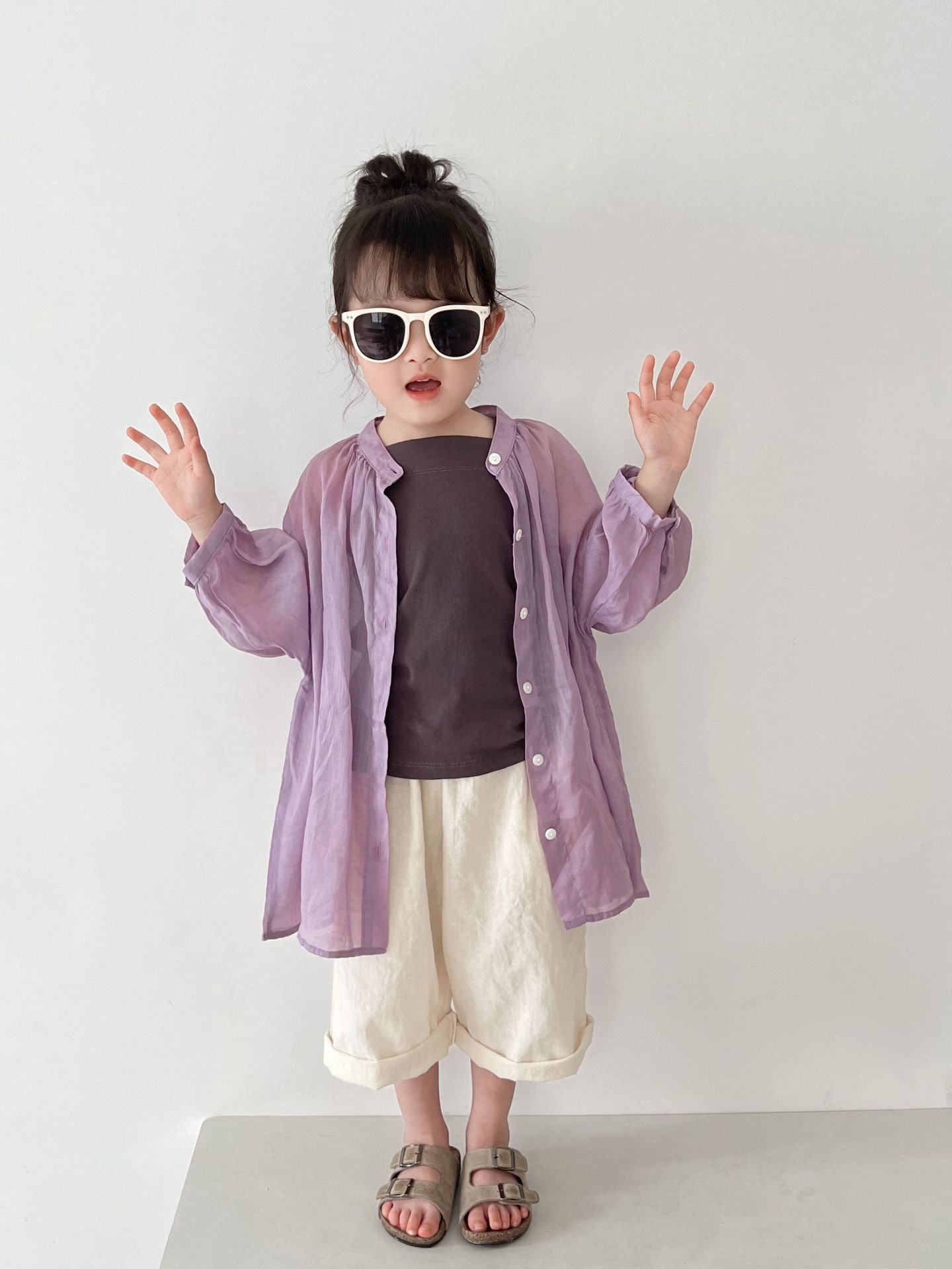 2025春新作子供用シャツa類女児カーディガン丸襟純色韓国版ゆったり男児用日焼け止めコート トップス