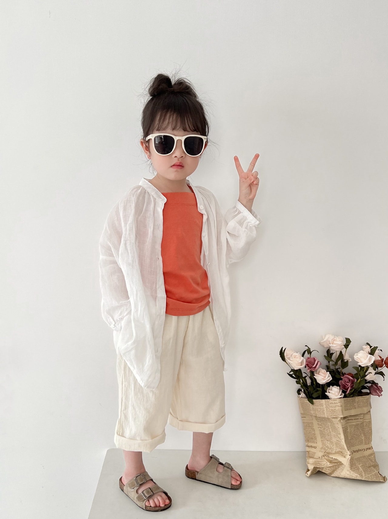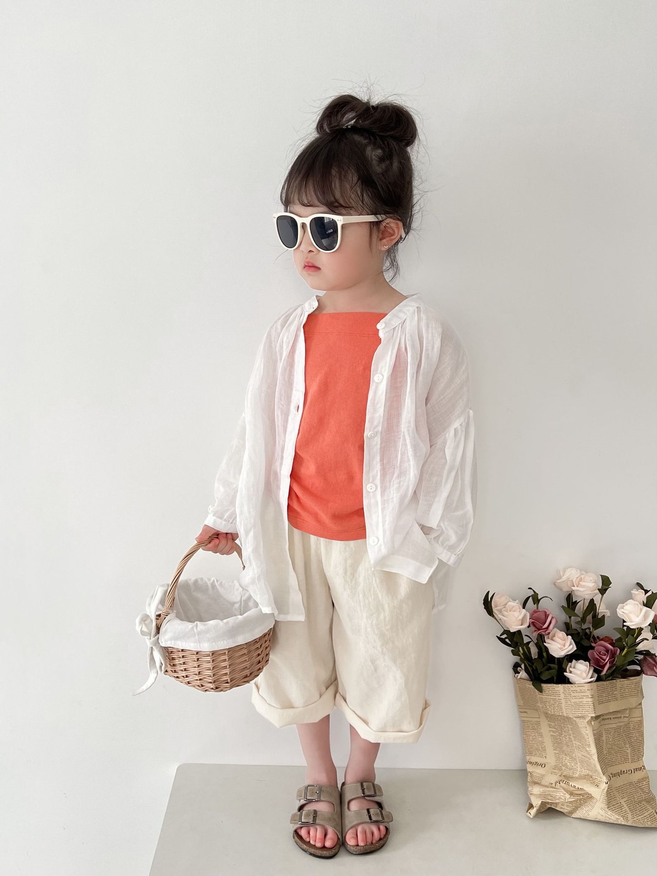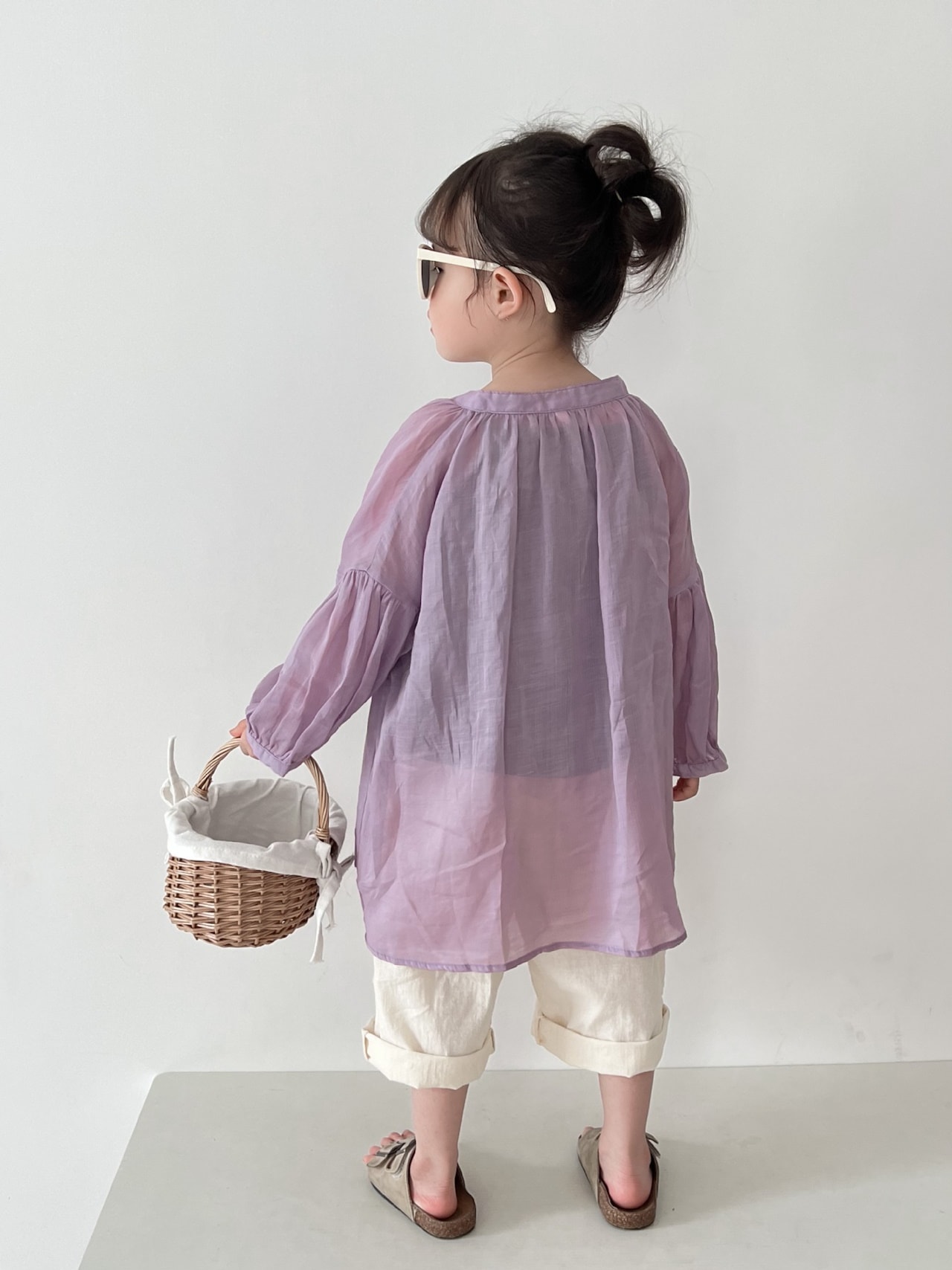 2025春新作子供用シャツa類女児カーディガン丸襟純色韓国版ゆったり男児用日焼け止めコート トップス