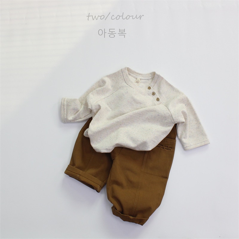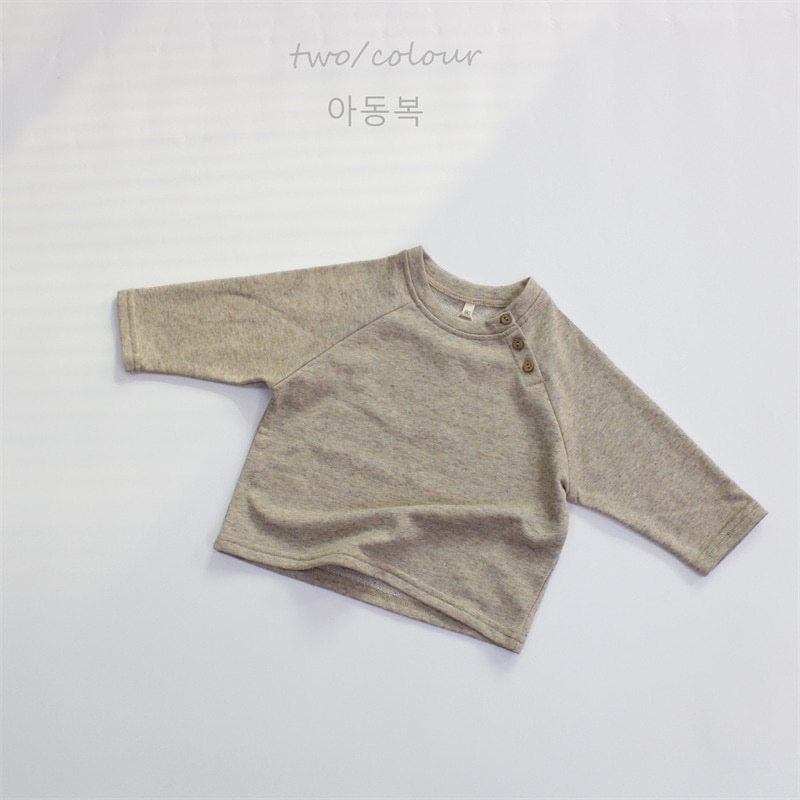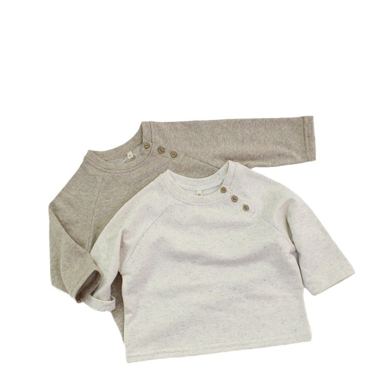 2025新品春子供服a類女児プルオーバー丸首純色韓国版男児上着長袖 ロンT トップス