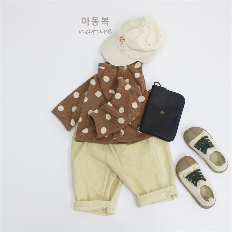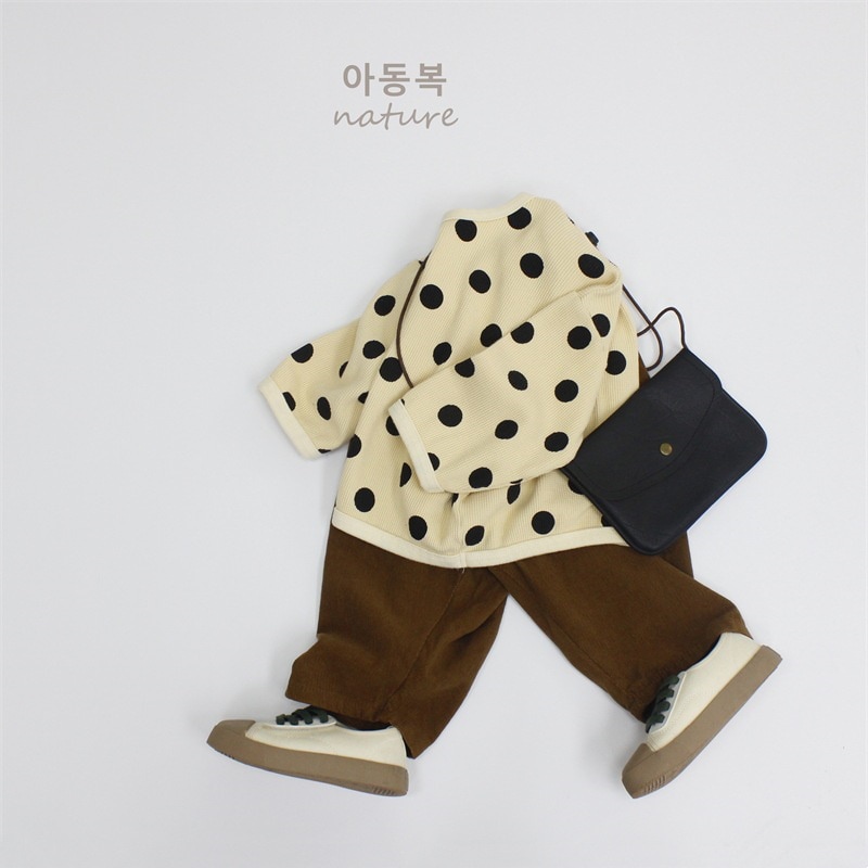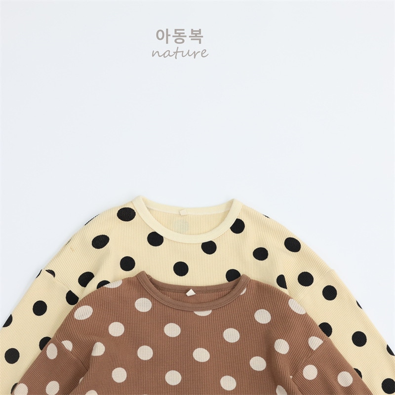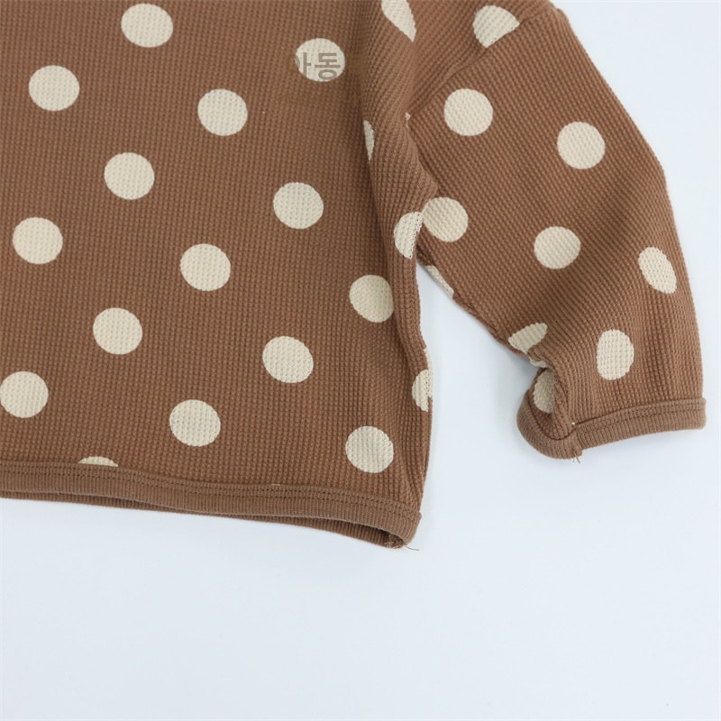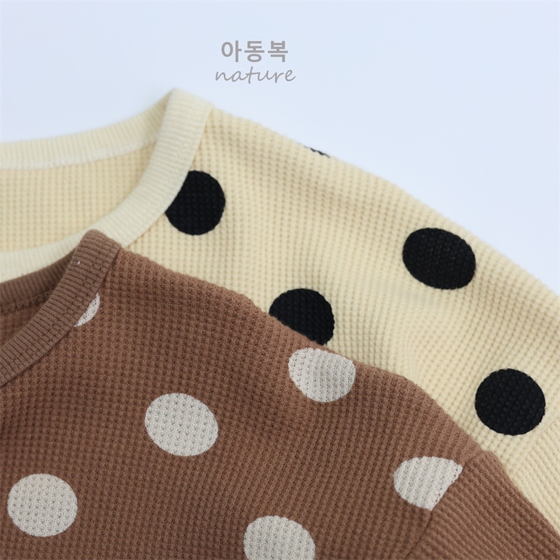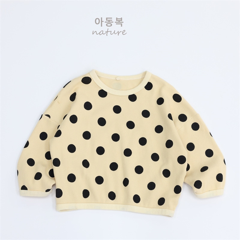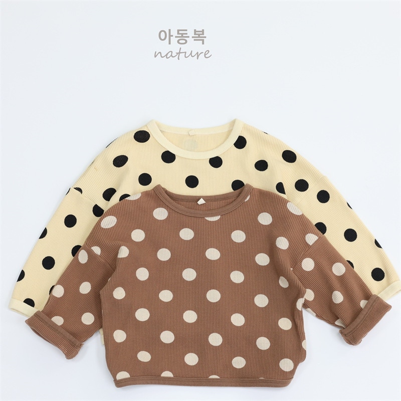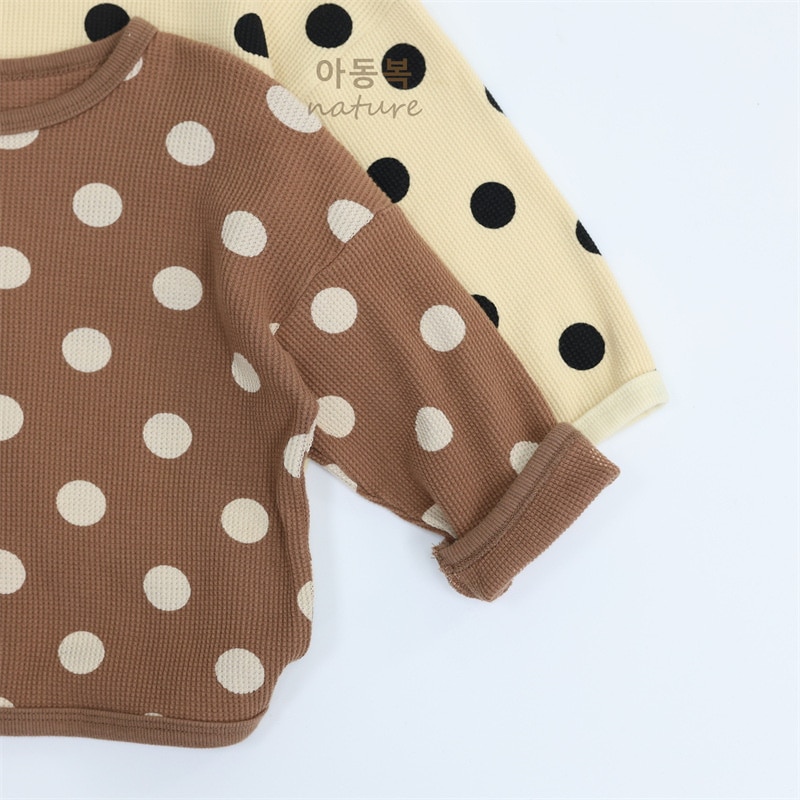 2025春子供Tシャツa類女児プルオーバー丸首長袖韓国版ゆったりドット男児上着 子供服 ロンt トップス