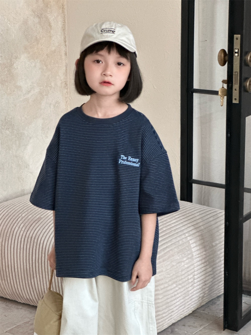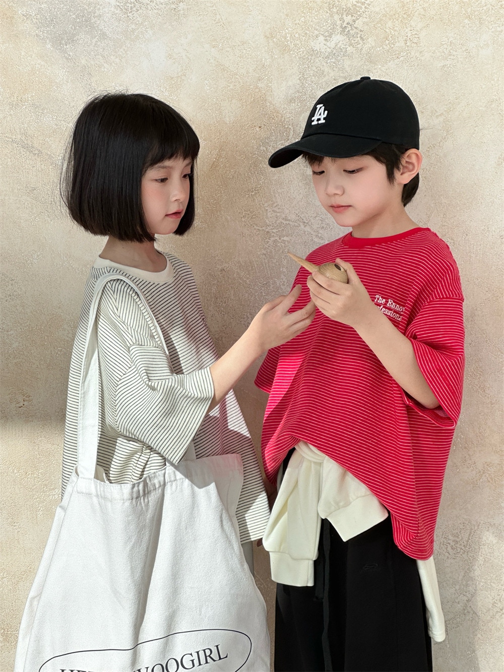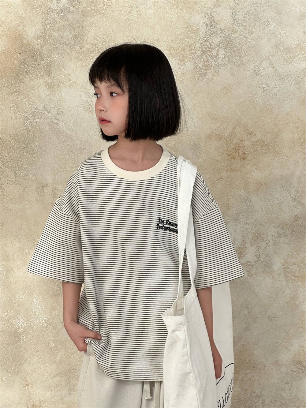 子供半袖2025春夏新作韓国版子供アルファベット刺繍ストライプ半袖男女子供ゆったり上着 子供 Tシャツ トップス