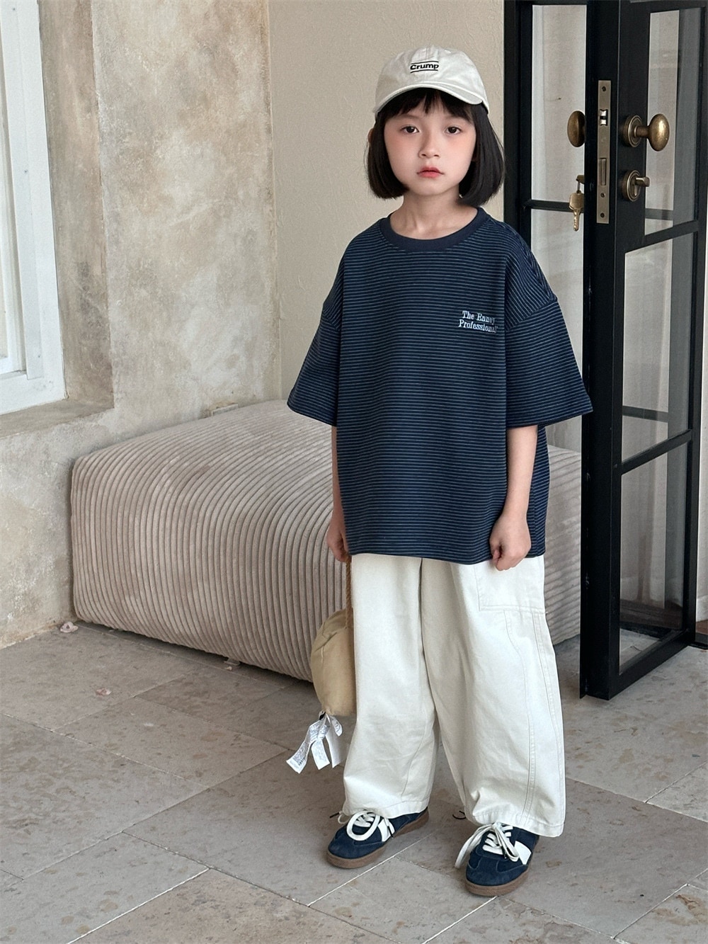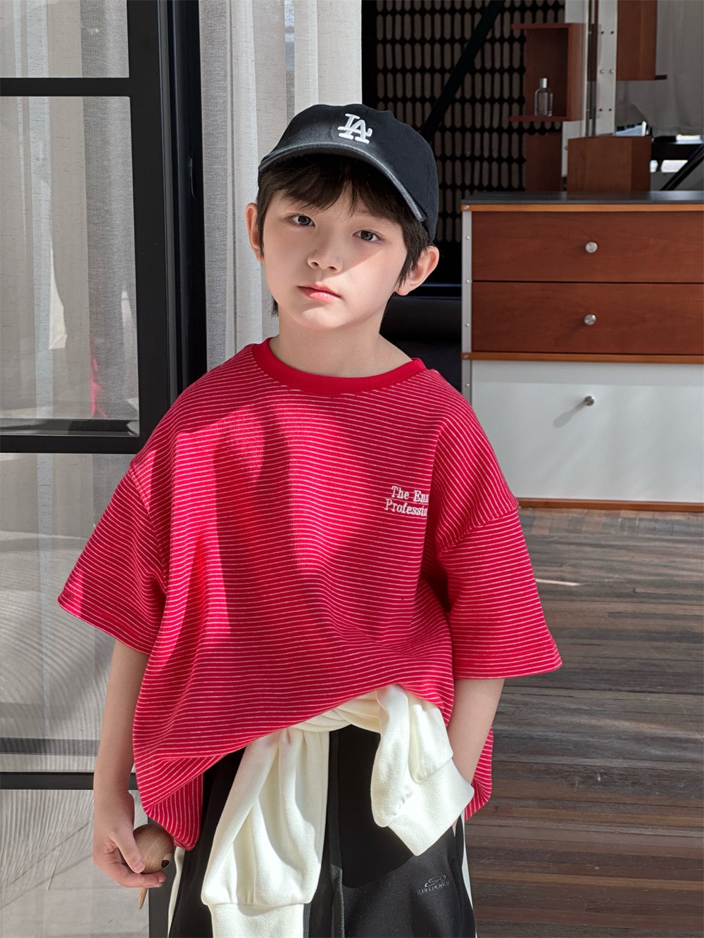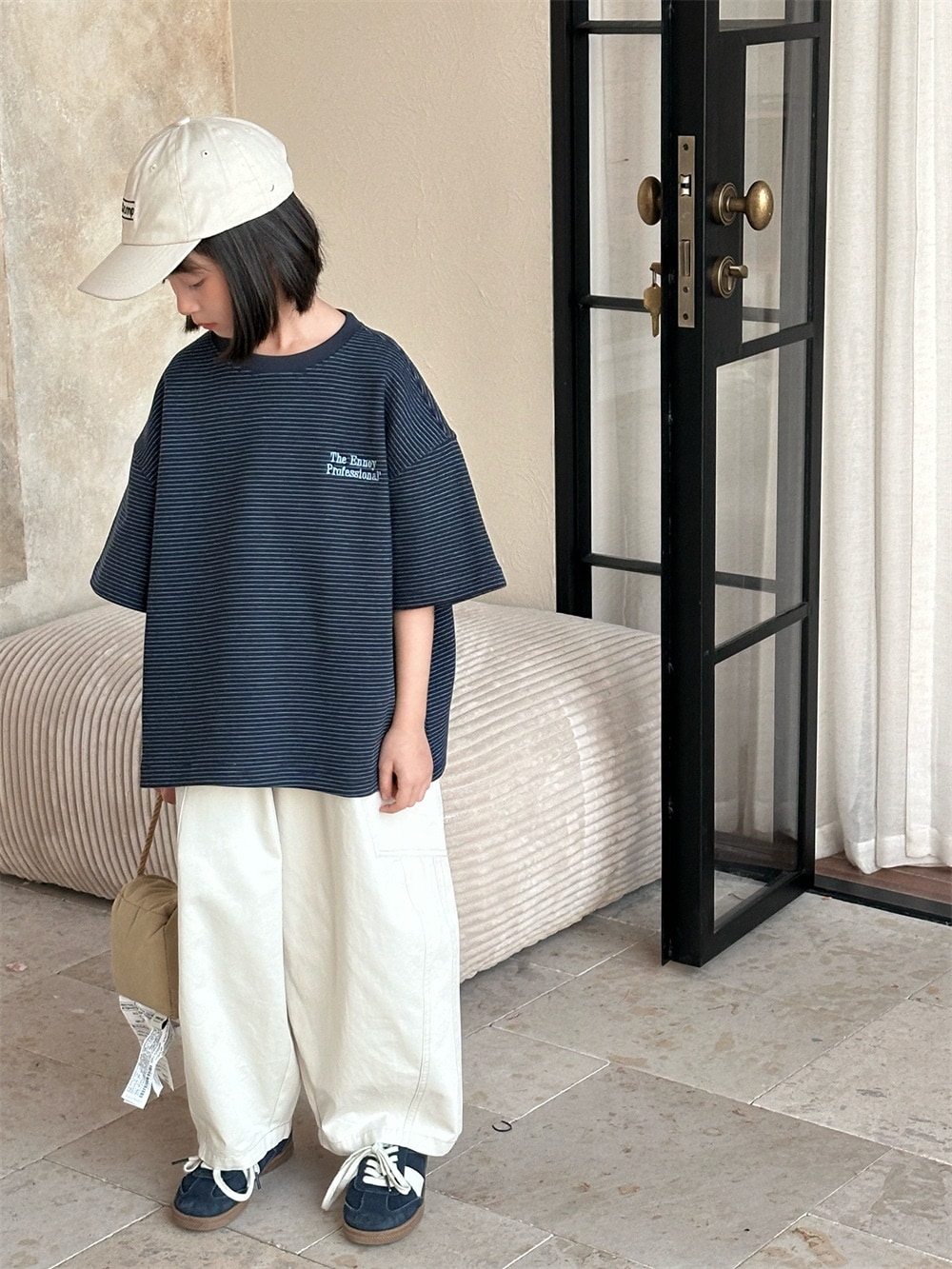 子供半袖2025春夏新作韓国版子供アルファベット刺繍ストライプ半袖男女子供ゆったり上着 子供 Tシャツ トップス