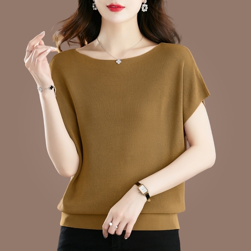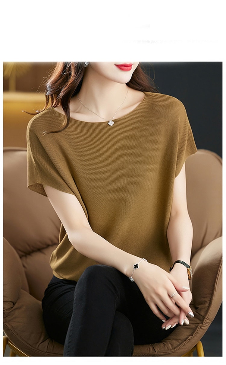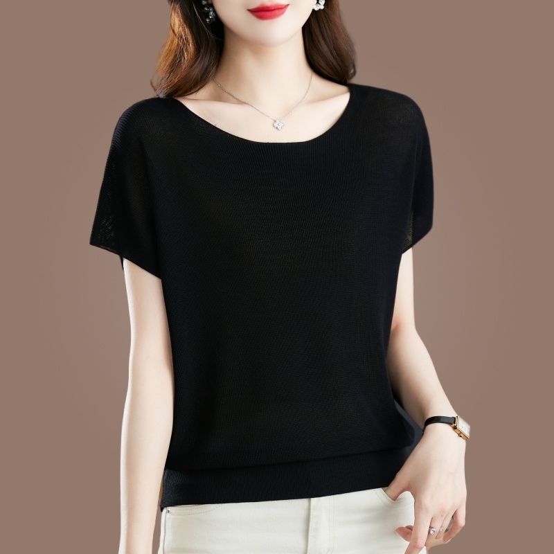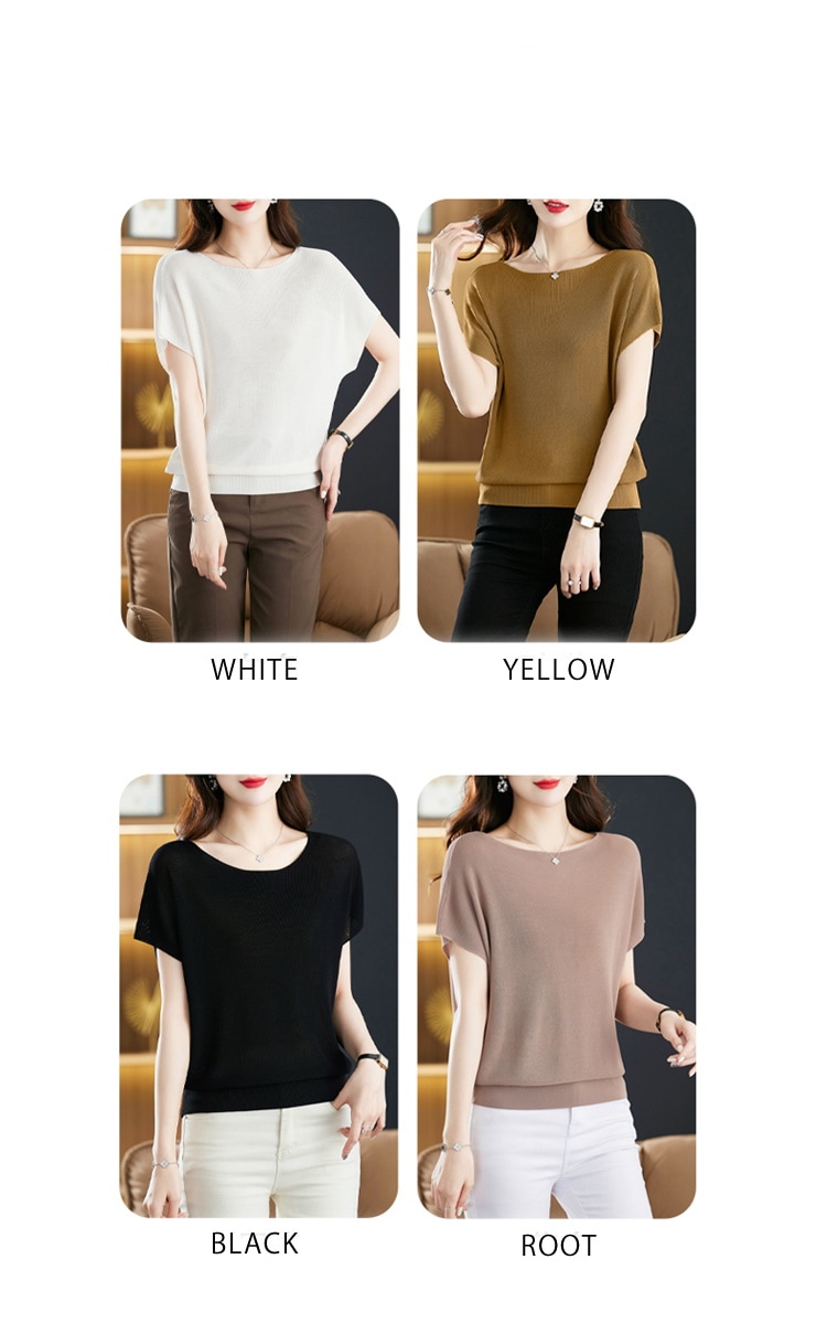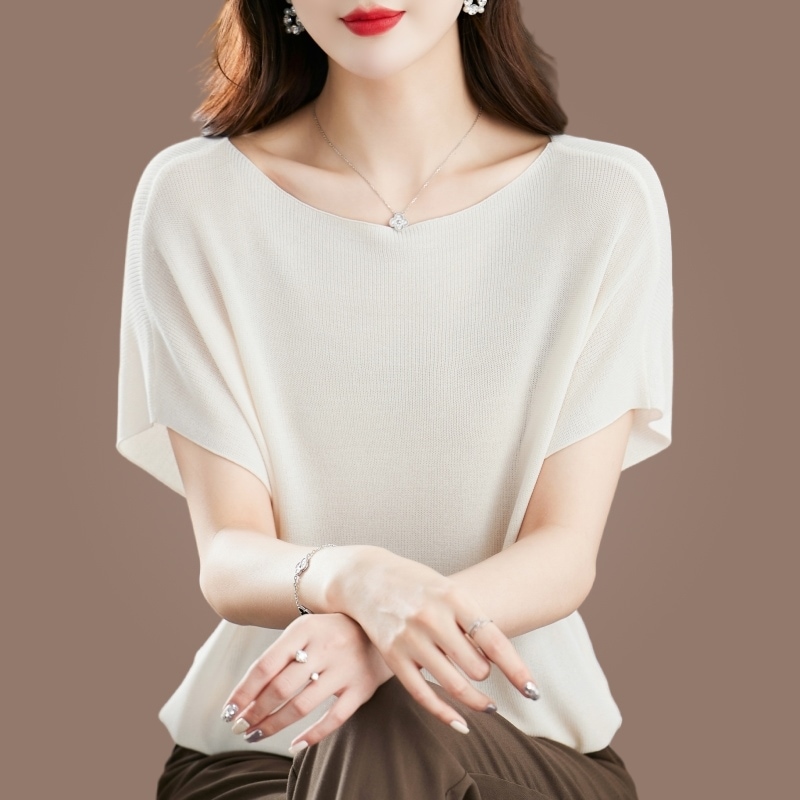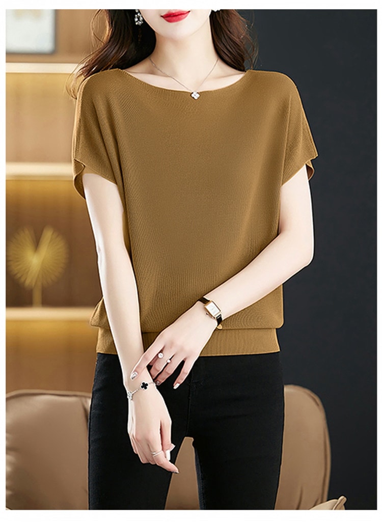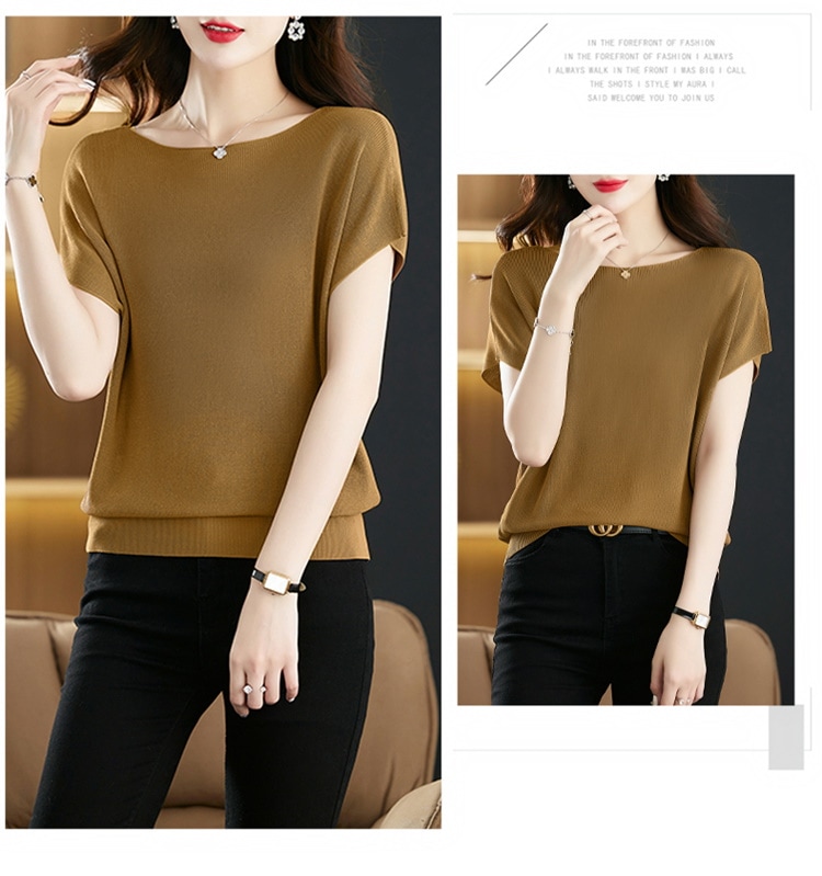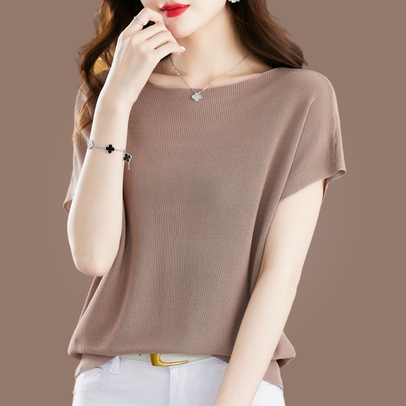 韓国ファッションサマーニット レディース トップス Tシャツ ニットセーター半袖柔らかくラウンドネックセーター女性 うな肌触りで着心地シャツ