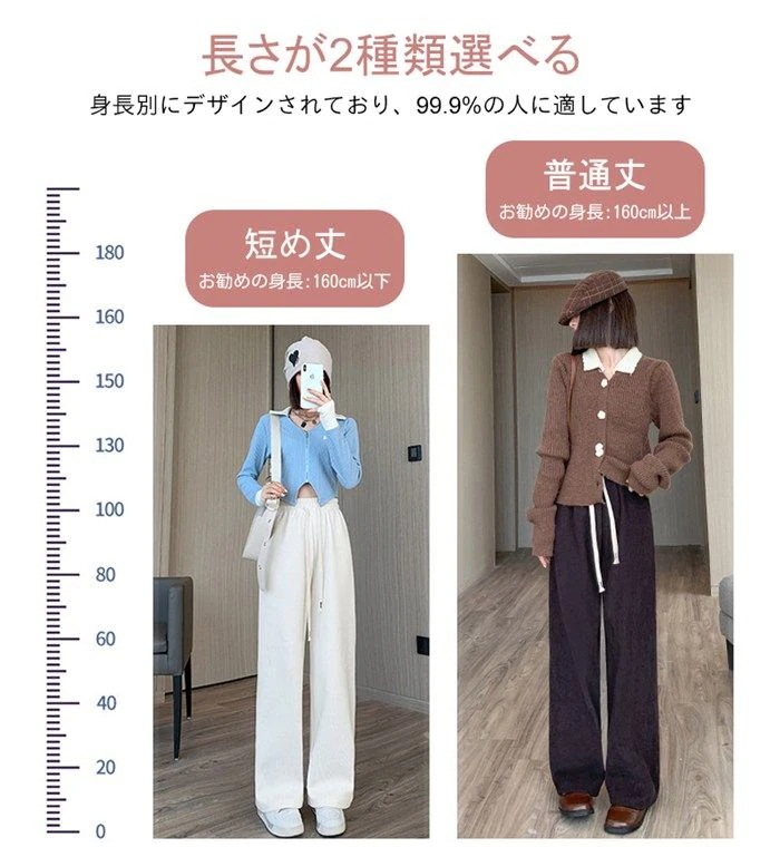 ズボン ルームウェア 冬 裏起毛 コーデュロイ ワイドパンツ ロング丈 カジュアル あったか 裏起毛パンツ 裏ボア シンプル 大人可愛い 無地 楽ちん ズボン