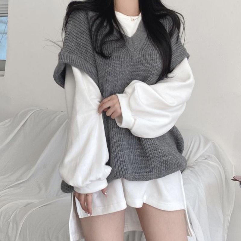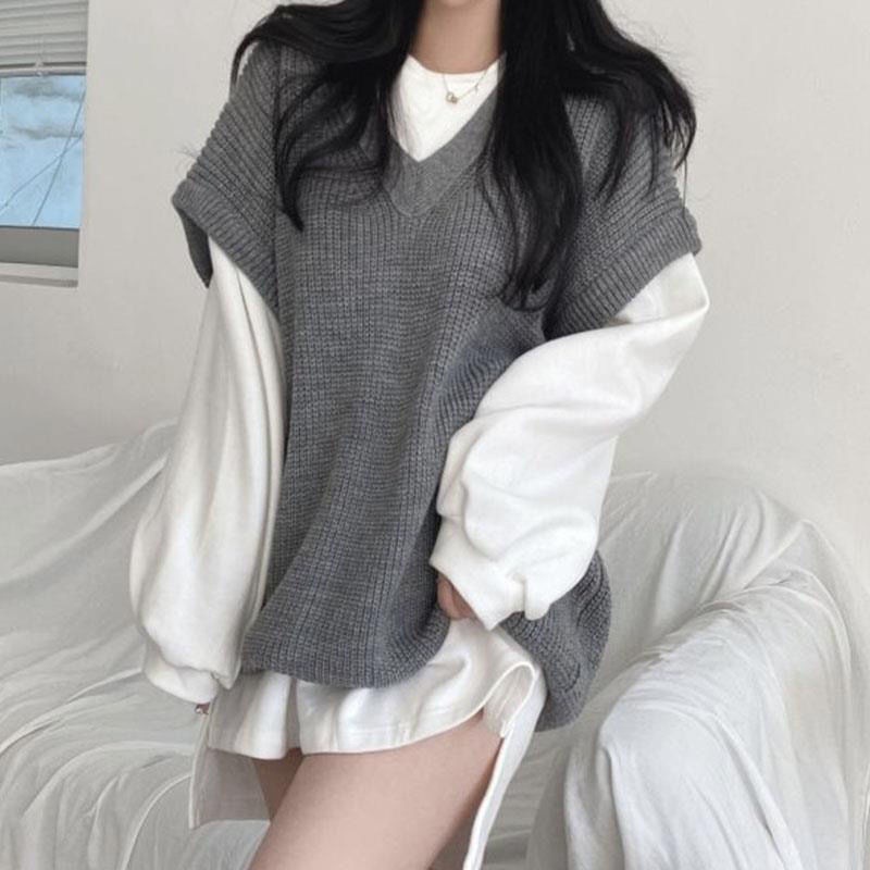 韓国ファッション秋冬 ニット ベスト ゆったり シンプルトップス ニットベスト 最安値に挑戦 Vネックトップスレディース セーター ベスト ベーシックニット