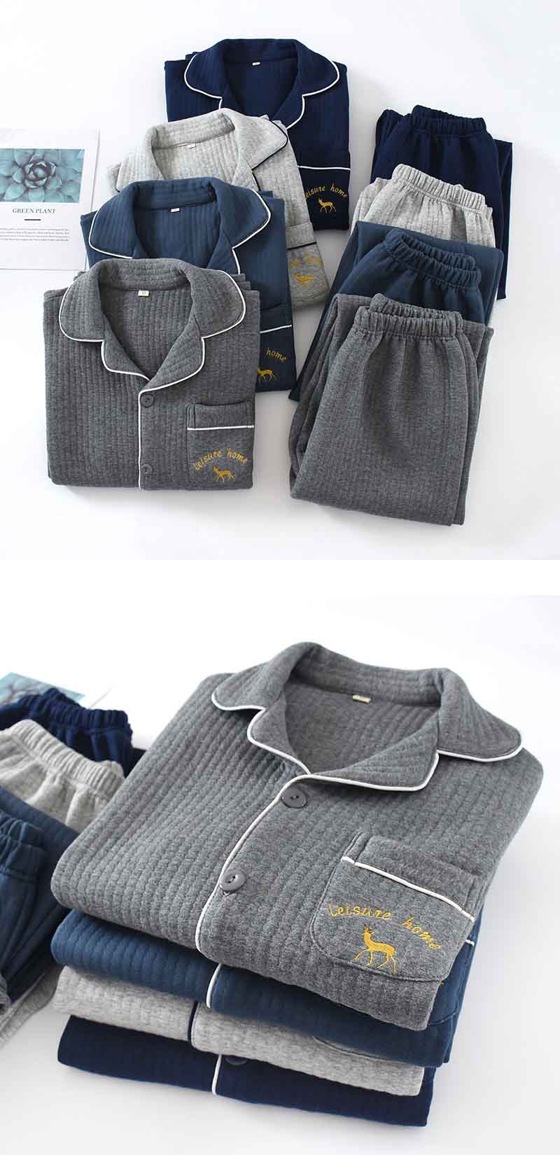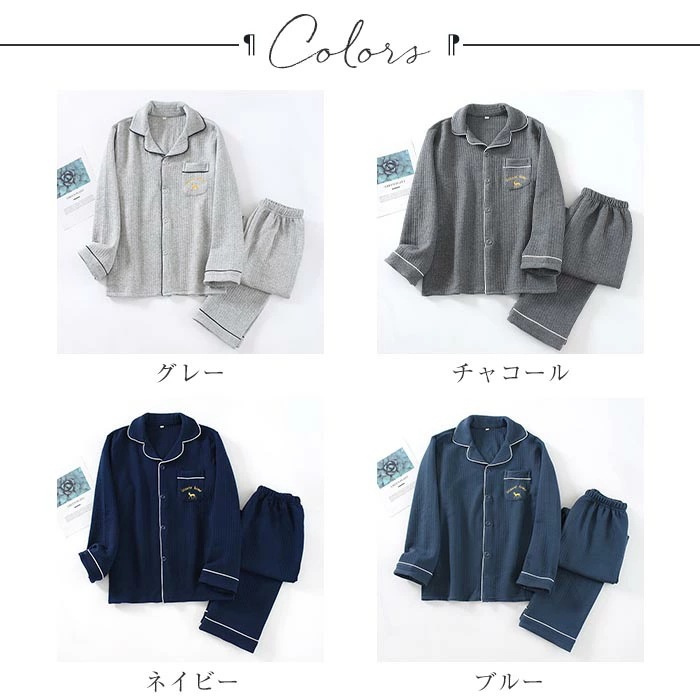 パジャマ メンズ 綿100% キルト 長袖 前開き 冬 上下セット M L ルームウェア 肌に優しい 暖かい 冬用 入院 紳士 旅行 無地 シンプル コットン 厚手 春 秋 男性 部屋着