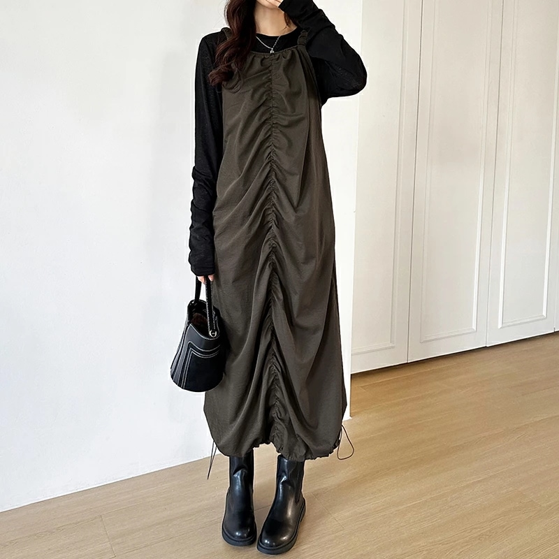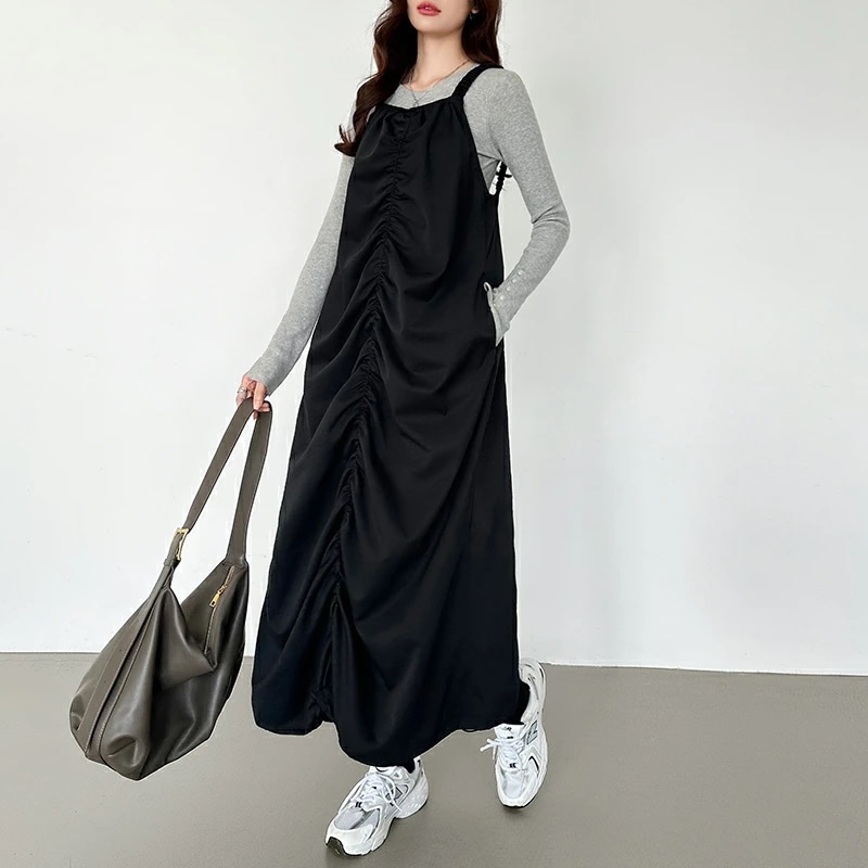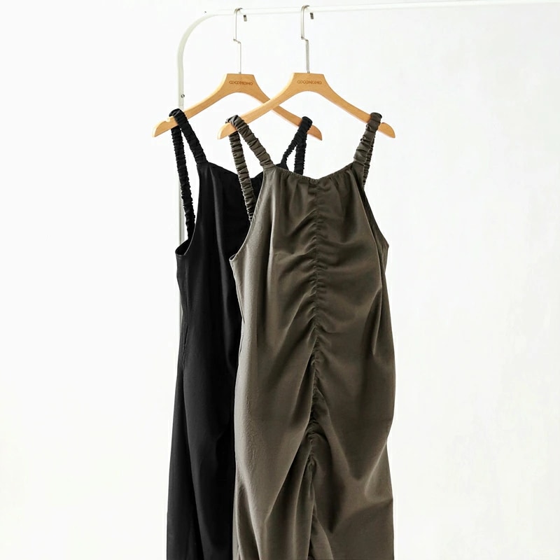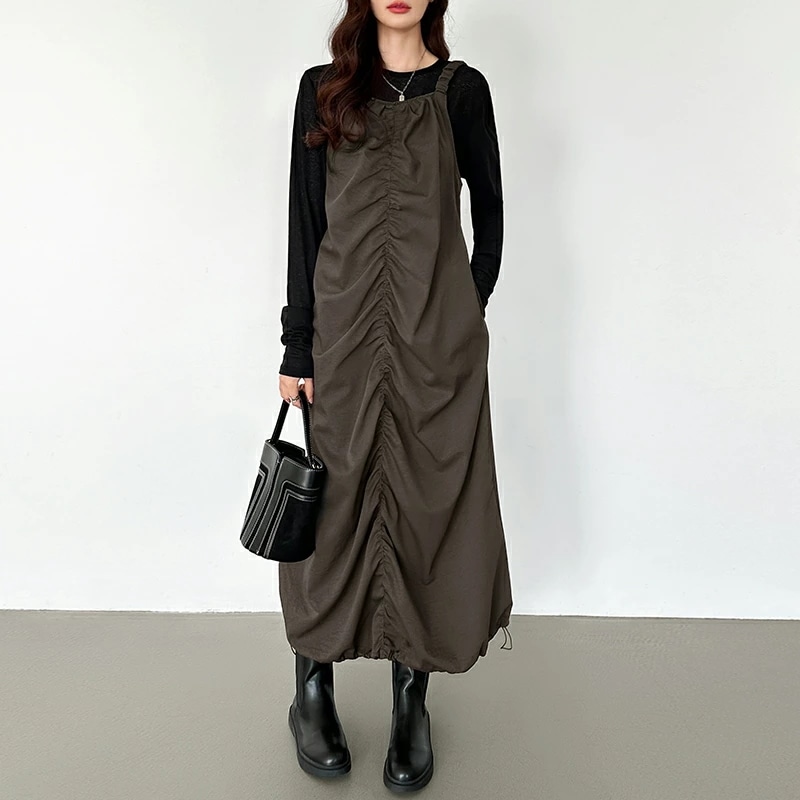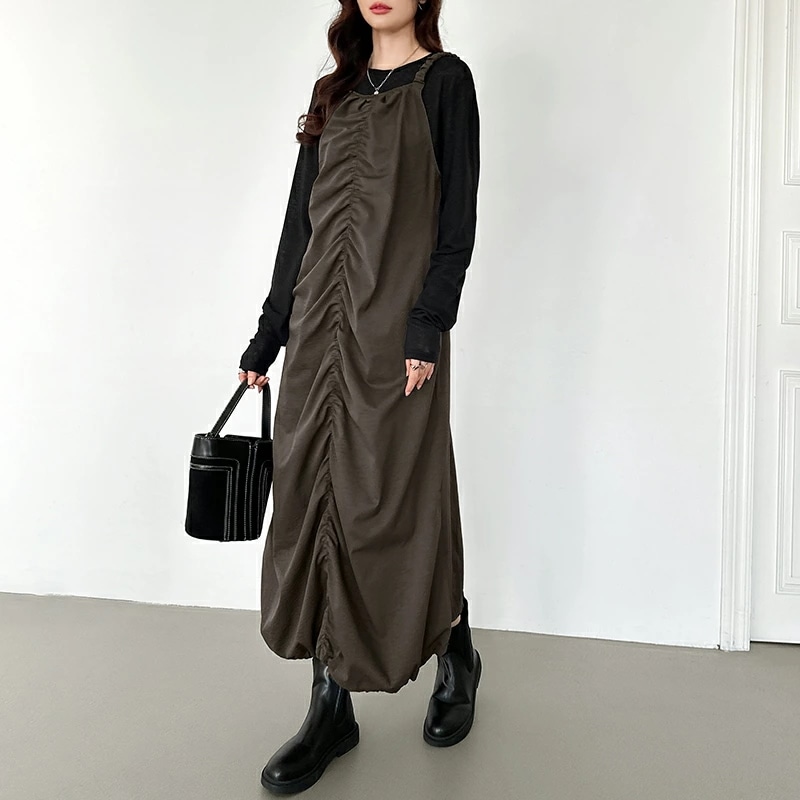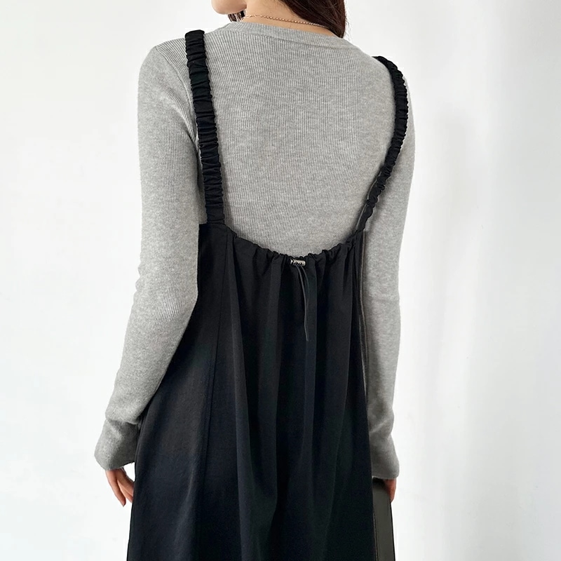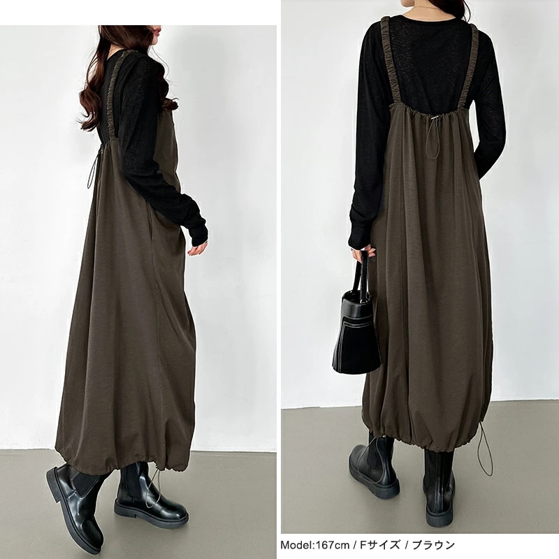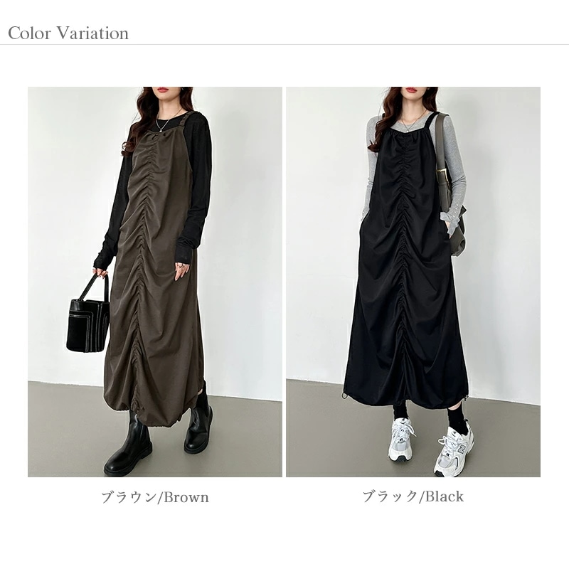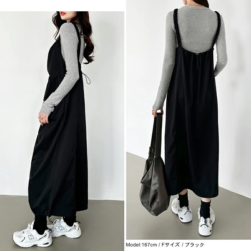 ワンピース ギャザーキャミワンピース カーゴジャンスカ ギャザー キャミワンピース レディース ドロスト ジャンパースカート キャミワンピ ロング 重ね着 ジャンスカ ロングワンピース