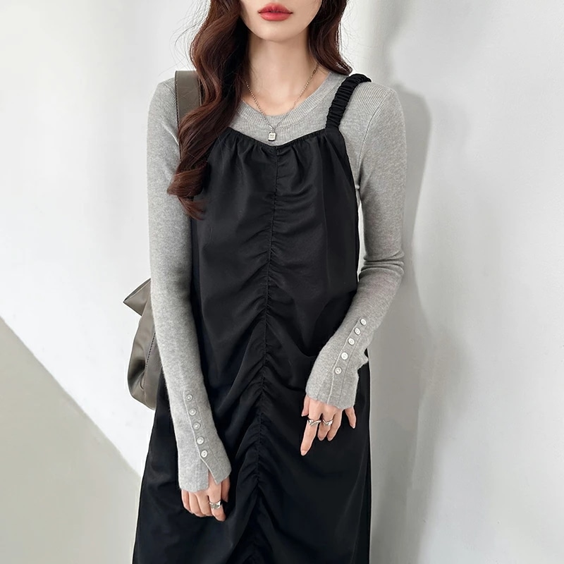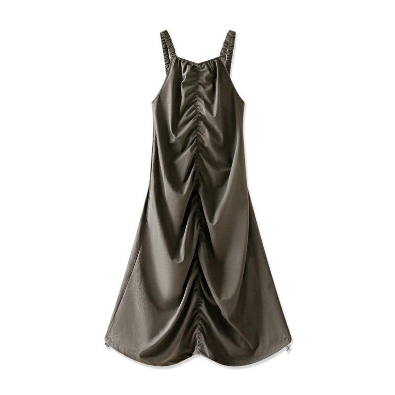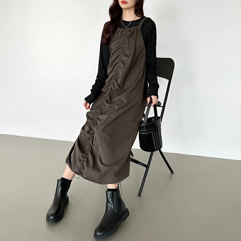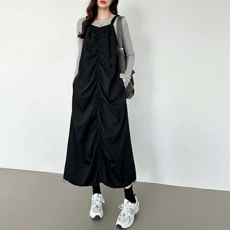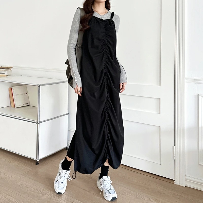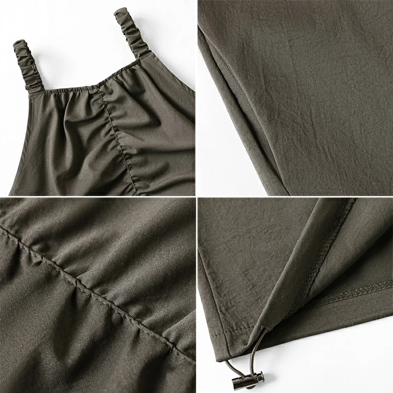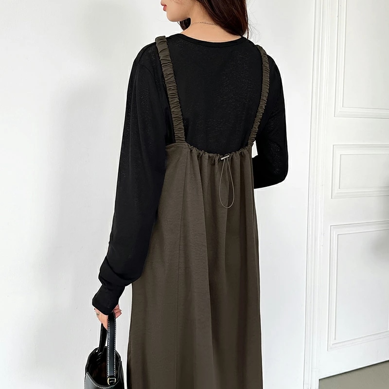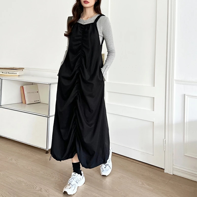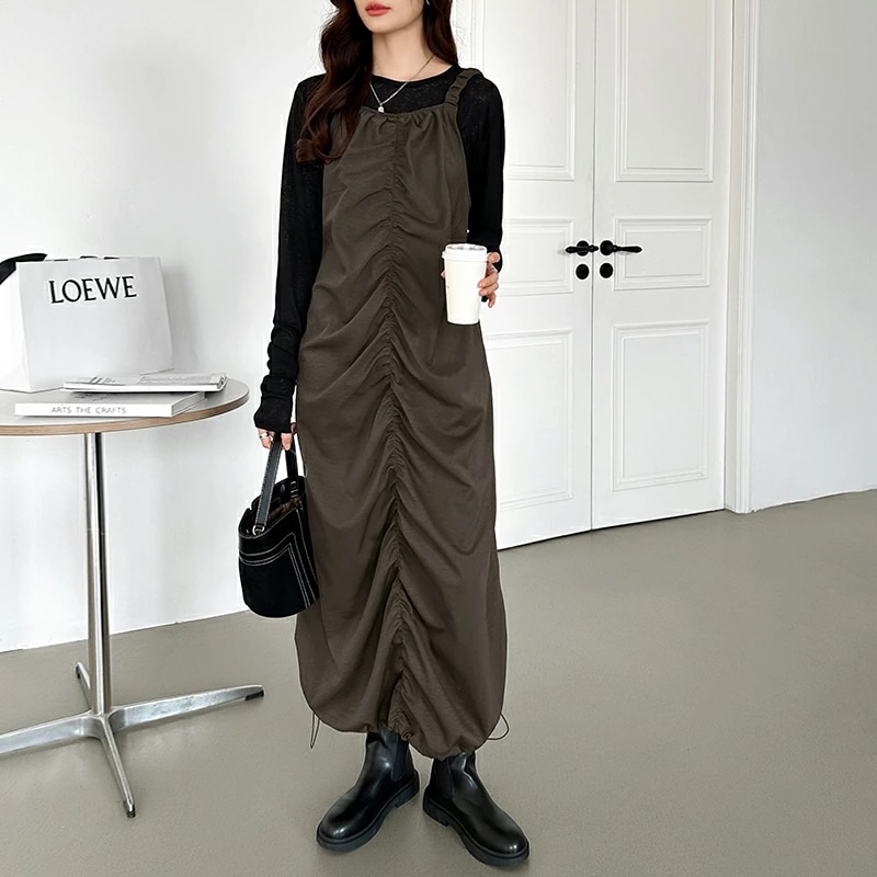ワンピース ギャザーキャミワンピース カーゴジャンスカ ギャザー キャミワンピース レディース ドロスト ジャンパースカート キャミワンピ ロング 重ね着 ジャンスカ ロングワンピース