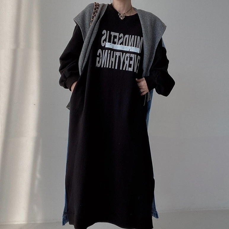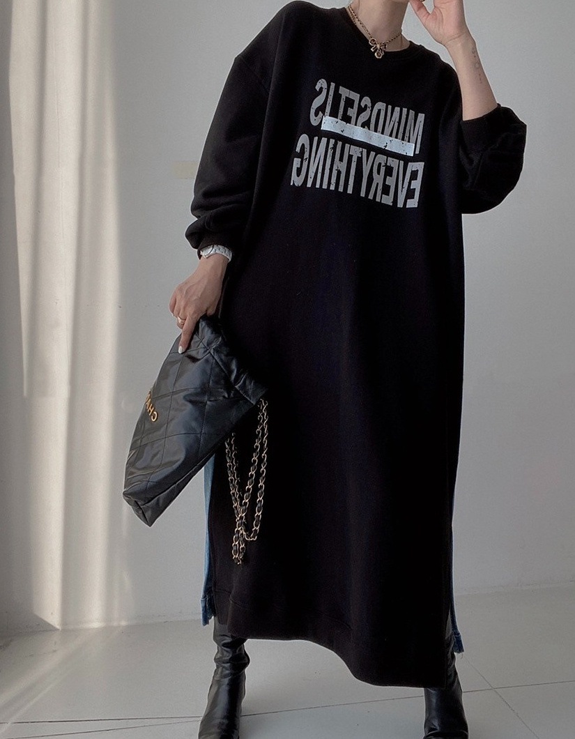 ワンピース レディース 40代 きれいめ マキシワンピース 無地 秋冬 長袖 ワンピース スウェット配色 切り替え カジュアル 長袖ロング マキシ丈ワンピ