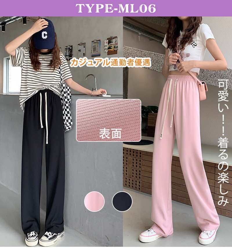 7 types無地イージーワイドパンツ トレンド リブ ワイドレッグパンツ レディース チェック柄ロングパンツ シンプル ゆったり リラックス カジュアル ズボン