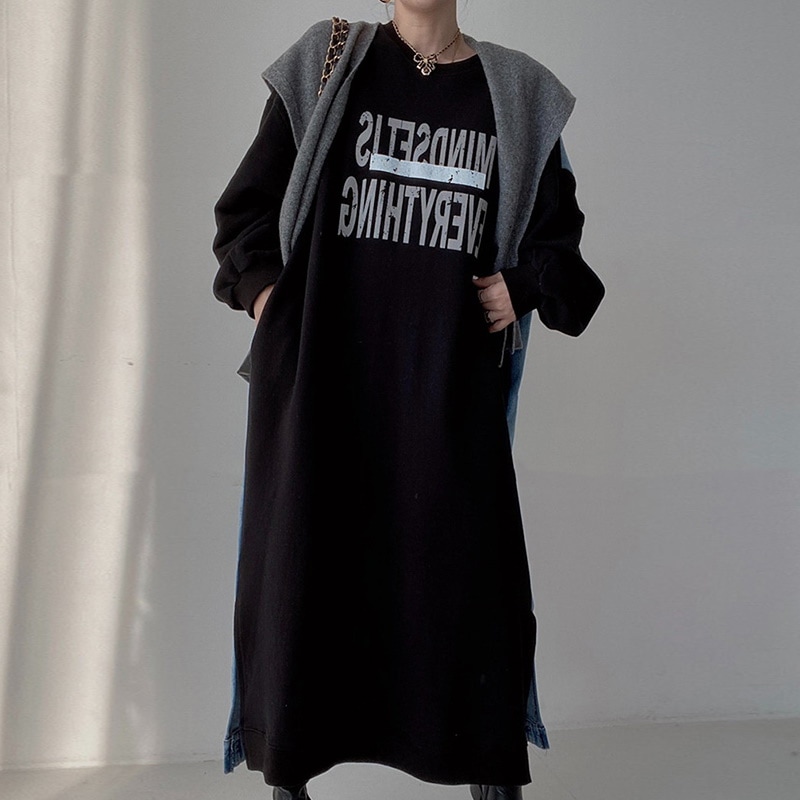 ワンピース レディース 40代 きれいめ マキシワンピース 無地 秋冬 長袖 ワンピース スウェット配色 切り替え カジュアル その他 ワンピース ドレス